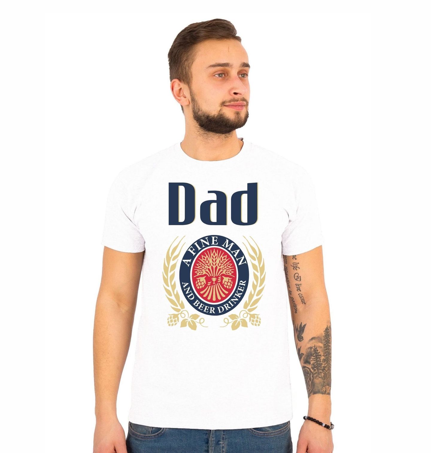 Pánské tričko Táta Pivař. Stylový design s motivem „Dad – A Fine Man and Beer Drinker“ (Táta – skvělý chlap a milovník piva) je ideální pro všechny hrdé tatínky. Tento design spojuje eleganci s humorem a oslavuje lásku k pivu i rodině.
