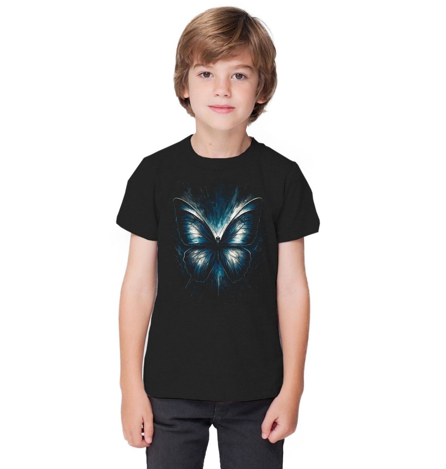 Dětské tričko Temný Motýl Morpho. Okouzlující motiv zachycuje ikonický motýl Morpho, známý svými hypnotizujícími modrými křídly a jedinečným leskem. Tento design vyzařuje klid, krásu a lehkost, která je pro motýl Morpho typická. Precizní detaily křídel a hluboké odstíny modré dodávají motivu luxusní a zároveň mystický nádech. Motýl Morpho je symbolem proměny, svobody a nových začátků, což z něj dělá ideální volbu pro ty, kteří chtějí nosit něco víc než jen design – příběh.