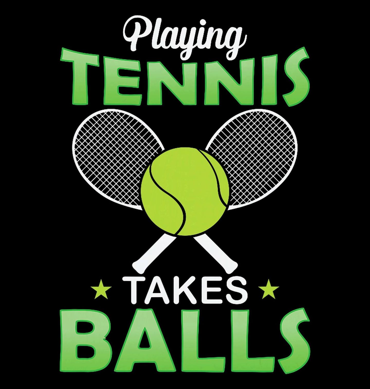 Dámské tričko Tenis Odvaha na Kurtu. Tento hravý design spojuje tenisové rakety a míček s vtipným textem „Playing tennis takes balls“, což znamená „Hrát tenis chce koule (odvahu)“. Perfektní motiv pro sportovce s humorem i vášní pro tenis.