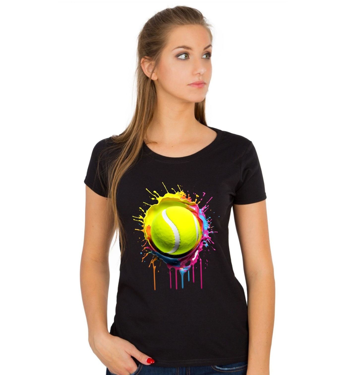 Dámské tričko Tenisový Míček. Explozivní kombinace barvy a pohybu! Tento motiv zachycuje dynamiku sportu v plné síle – tenisový míč právě proráží paletu sytých odstínů. Ideální pro všechny, jejichž vášní je sport, rychlost a tenis. Nechte za sebe mluvit energii každého úderu – míč letí přímo z plátna!
