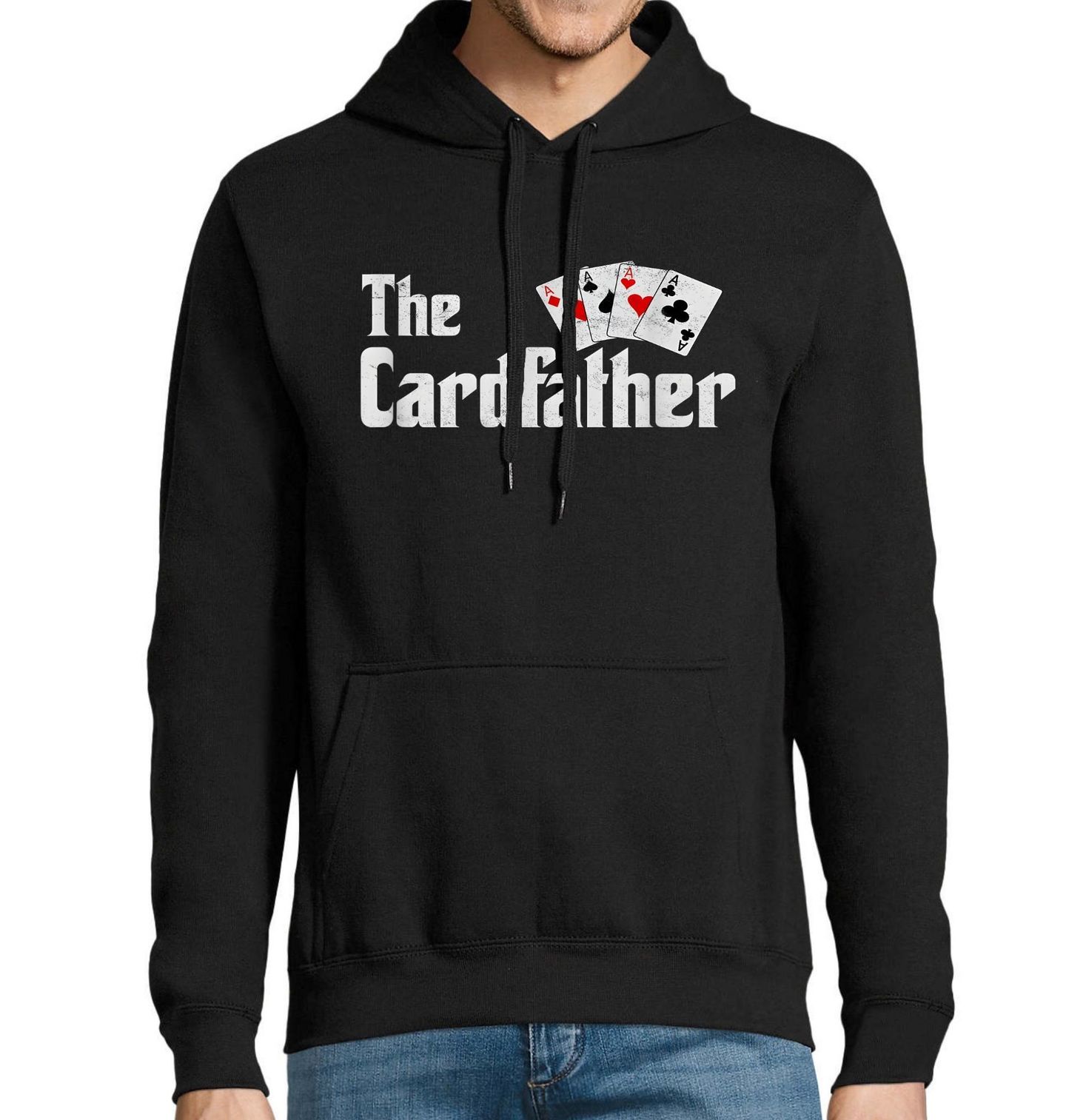 Pánská mikina The Cardfather Kmotr Karet. Vstup do světa, kde se místo omerty drží poker face a kde se místo pušek tasí karty. Tričko „The Cardfather“ je vtipnou a stylovou parodií na kultovní film The Godfather – jen s tím rozdílem, že tady se neřeší mafiánské dohody, ale eso v rukávu. Perfektní volba pro všechny milovníky pokeru a blackjacku.