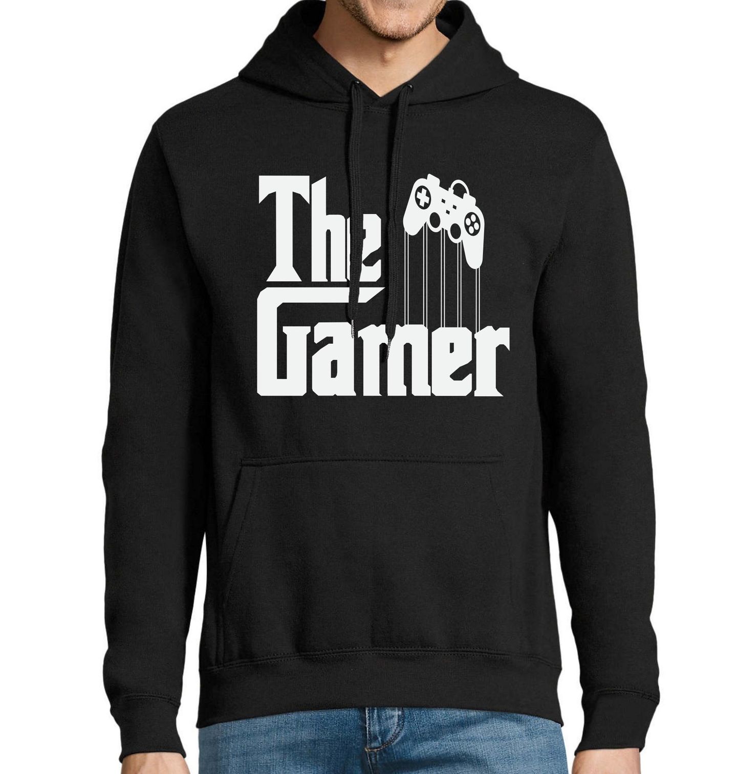 Pánská mikina The Gamer Herní Kmotr. Výrazný nápis „The Gamer“ v ikonickém stylu filmu Kmotr (The Godfather) vytváří vtipnou parodii spojující svět mafie a herní kultury. Motiv zobrazuje herní ovladač jako symbol moci a respektu, čímž dává jasně najevo, že tento gamer je skutečný boss. Ideální design pro každého hráče, který miluje hry, filmové odkazy a stylový humor.