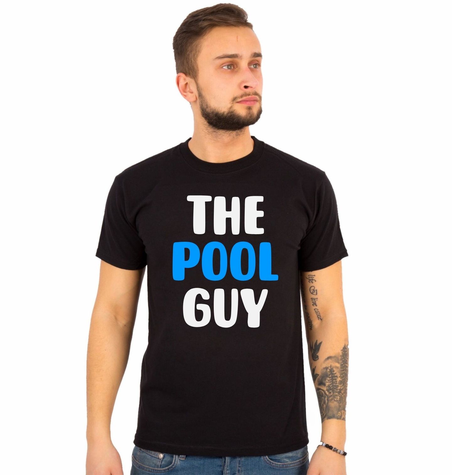Pánské tričko The Pool Guy. Výrazný typografický motiv s nápisem The Pool Guy (Pán bazénu), který jasně dává najevo, kdo je doma u bazénu. Design je jednoduchý, moderní a ideální pro všechny, kdo mají plavání jako životní styl, vášeň nebo profesi. Skvěle sedne plavcům, trenérům i fanouškům vody, kteří se nebojí ukázat, že bazén je jejich teritorium.