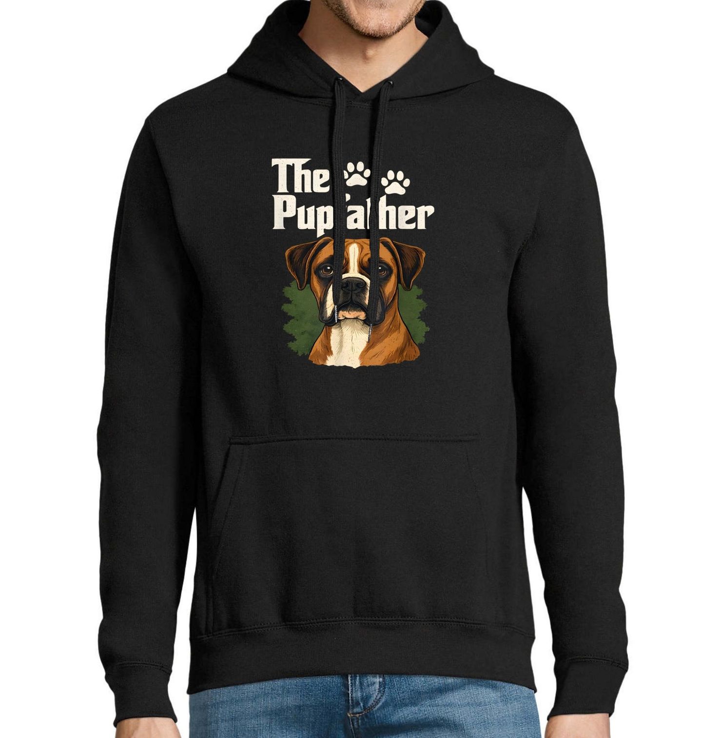 Pánská mikina The Pupfather Kmotr Boxer. Když svět filmu potká psí eleganci – přichází „Pes kmotr“. Stylové tričko s motivem parodie na legendární film The Godfather a hlavním hrdinou, kterým je majestátní boxer. Ideální pro všechny milovníky psů, filmu a humoru. Pes, co tě ochrání… i kdyby ti měl jen ukrást deku z gauče.