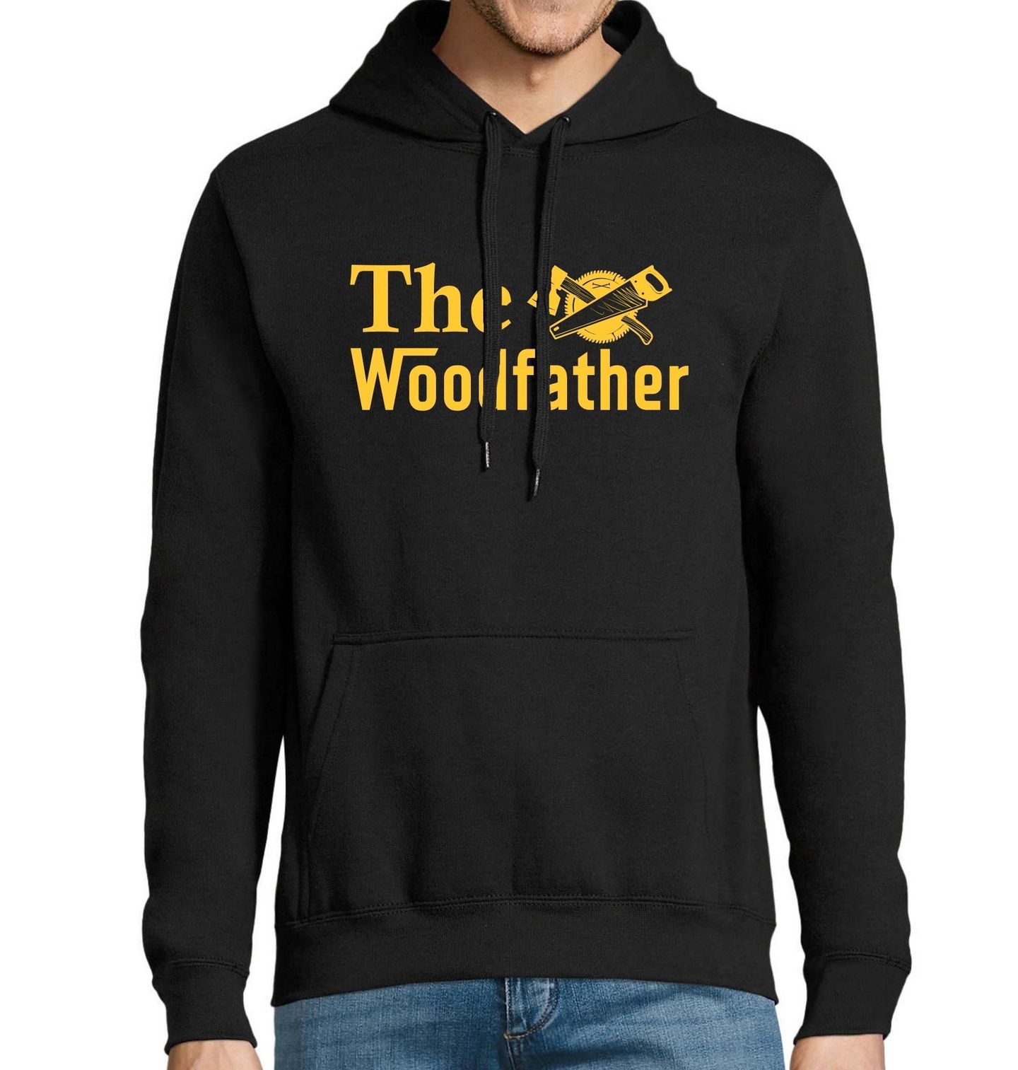 Pánská mikina The Woodfather Kmotr dřeva. Staň se kmotrem dřeva s tímto stylovým motivem The Woodfather, který paroduje slavný film The Godfather (Kmotr). Ideální dárek pro každého, kdo miluje truhlářství a má rád vtipné narážky. Design spojuje ikonické nářadí – pila, sekera a kotouč – do mafiánského stylu, který rozesměje i nejtvrdšího řemeslníka.