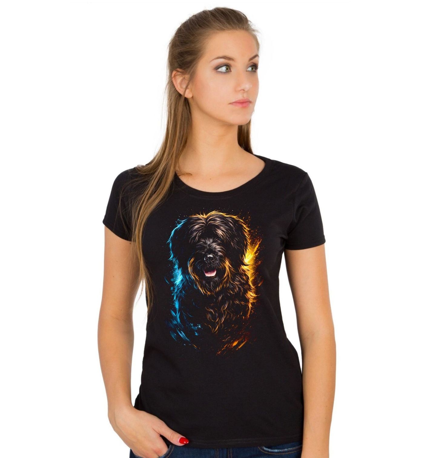 Dámské tričko Tibetský teriér. Tento nádherný pes s hustou, dlouhou srstí a jemným výrazem působí klidně, vyrovnaně a zároveň velmi charismaticky. Každý pejskař ocení detailní zpracování srsti i přirozený výraz, který dokonale vystihuje povahu tohoto plemene. Tibetský teriér je inteligentní, hravý a věrný společník, který si vytváří silné pouto se svou rodinou.