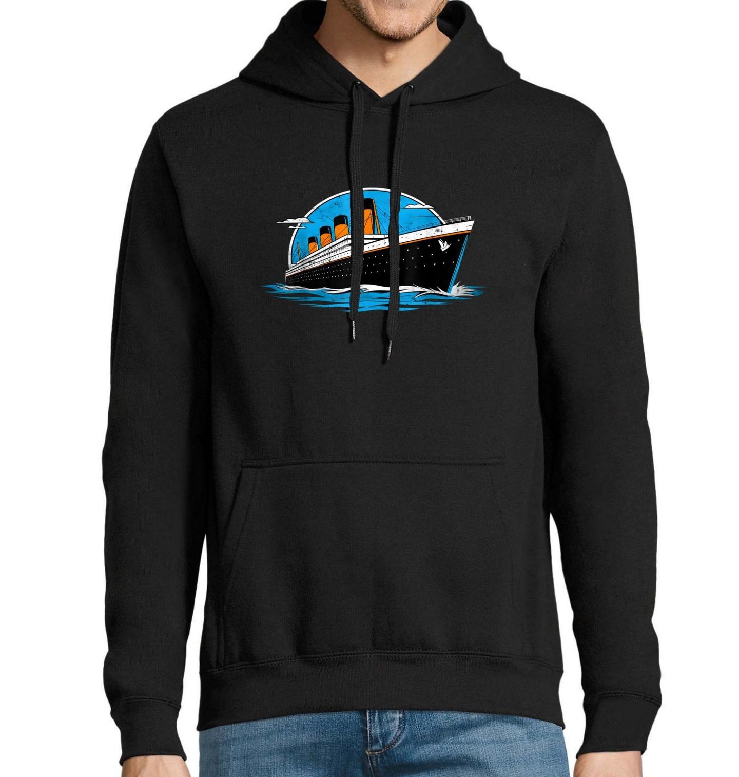 Pánská mikina Titanic na Vlnách Oceánu. Motiv lodi Titanic jako symbolu nejznámější námořní tragédie všech dob. Tato loď navždy zůstane zapsána v dějinách jako majestátní královna moře, která vyplula za snem, ale skončila v legendě. Perfektní pro všechny fanoušky historie, námořnictví a romantiky oceánu.