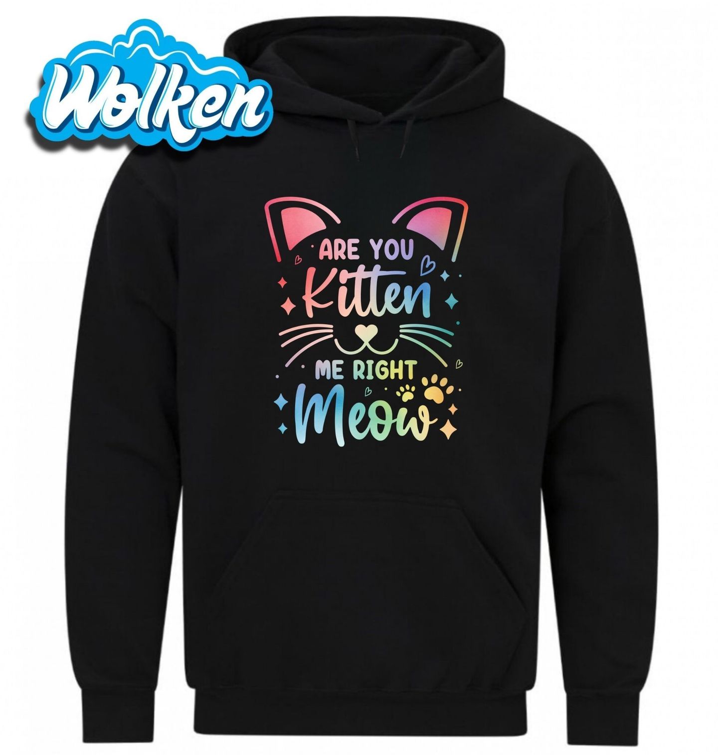 Pánská mikina To si ze mě děláš kočku? "Are You Kitten Me Right Meow" je anglická slovní hříčka, která v překladu znamená něco jako „To si děláš kočku právě teď?“ – tedy hravé pojetí známého „Děláš si srandu, nebo co?“ s použitím slova kočka a mňau. S tím, že „kitten“ je záměrně použito místo „kidding“ → „děláš si srandu“.