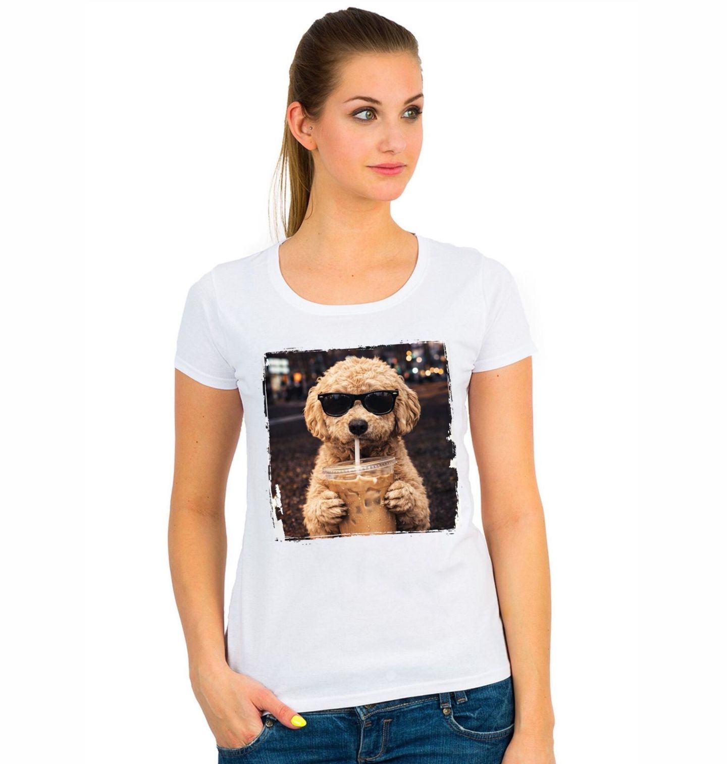 Dámské tričko Toy Pudl s Ledovou Kávou. Tento pes působí uvolněně, sebevědomě a dokonale vystihuje moderní životní styl každého pejskaře. Na obrázku je pravděpodobně plemeno pudl (toy nebo mini pudl), známé svou kudrnatou srstí a roztomilým vzhledem. Motiv pes je ideální pro všechny milovníky psů, kteří chtějí vyjádřit svůj vztah ke zvířatům i smysl pro humor. Kombinace pudla a motivu ledová káva vytváří moderní design, který zaujme na první pohled.