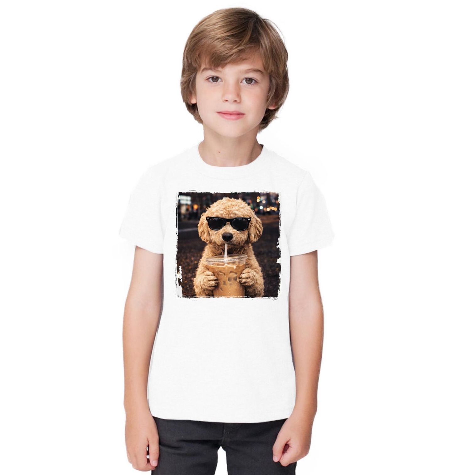 Dětské tričko Toy Pudl s Ledovou Kávou. Tento pes působí uvolněně, sebevědomě a dokonale vystihuje moderní životní styl každého pejskaře. Na obrázku je pravděpodobně plemeno pudl (toy nebo mini pudl), známé svou kudrnatou srstí a roztomilým vzhledem. Motiv pes je ideální pro všechny milovníky psů, kteří chtějí vyjádřit svůj vztah ke zvířatům i smysl pro humor. Kombinace pudla a motivu ledová káva vytváří moderní design, který zaujme na první pohled.