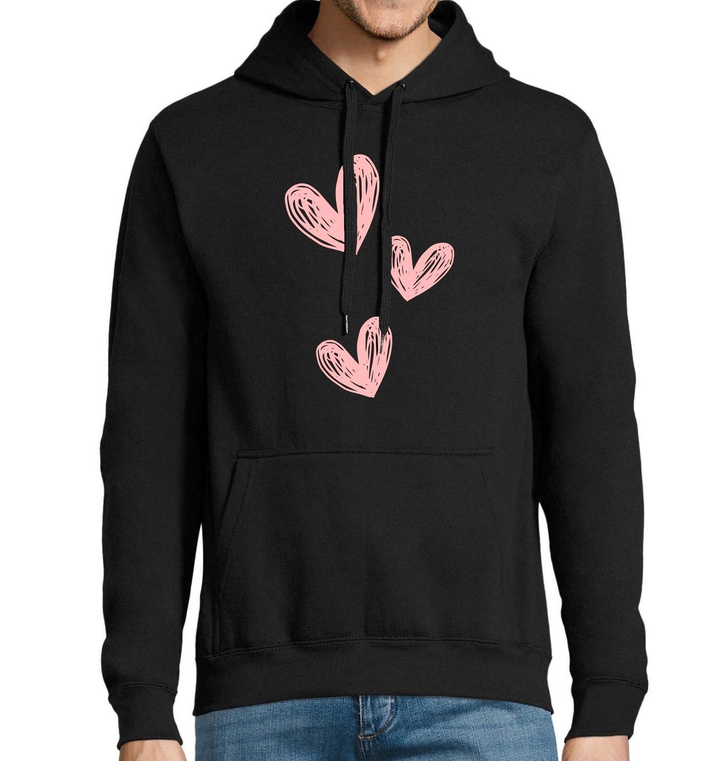 Pánská mikina Tři růžová srdce Three Pink Hearts. Oslavujte lásku a radost pomocí minimalistického motivu tří růžových srdcí. Design symbolizuje něžnost, pozitivní energii a optimismus, což dělá z tohoto kousku ideální volbu pro každého, kdo chce do svého stylu vnést kousek lásky a radosti.