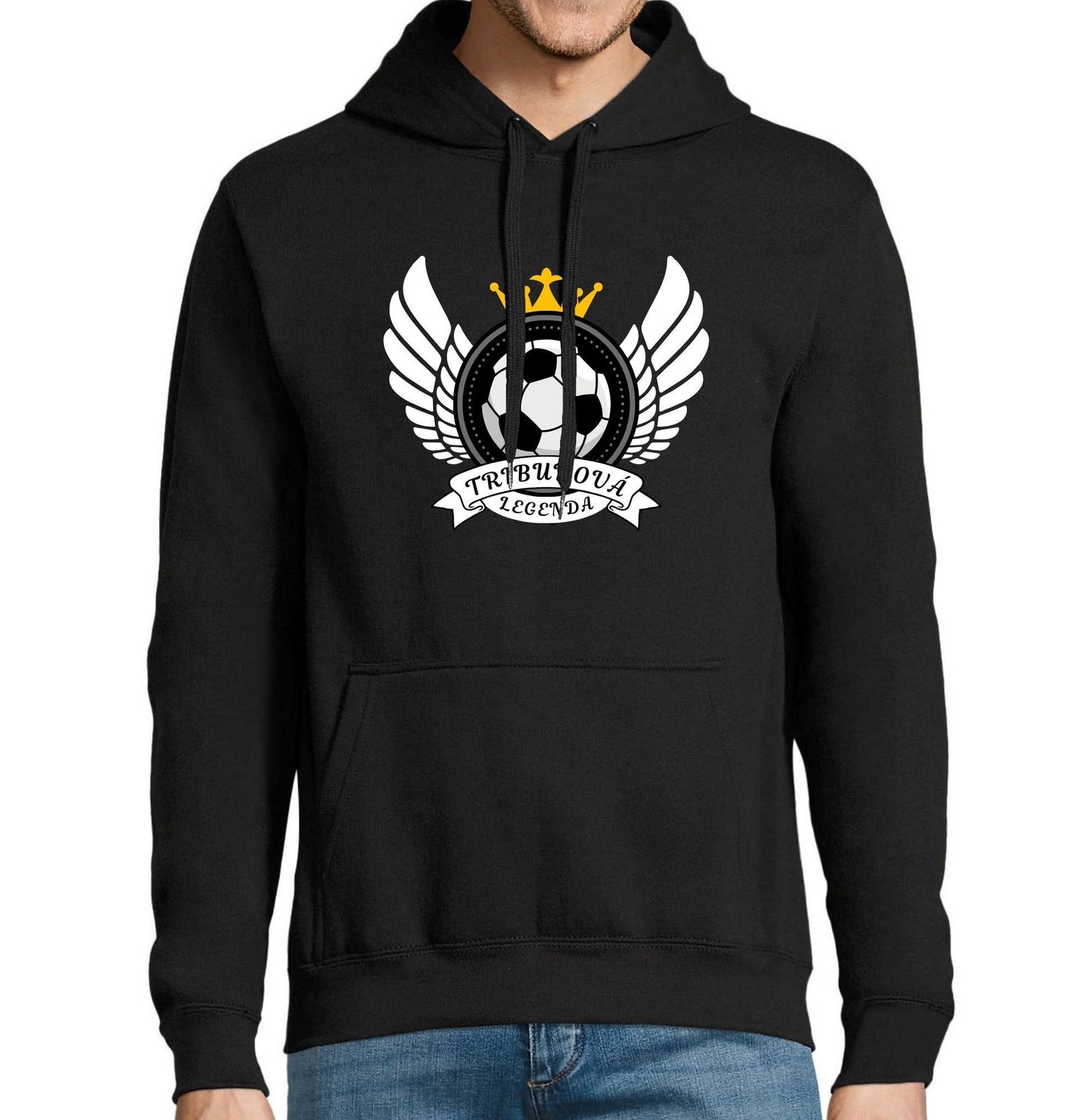 Pánská mikina Tribunová Legenda. Motiv fotbalového míče s křídly a korunou mluví za vše – patříš mezi elitu fanoušků. Ať už fandíš doma, na stadionu nebo v hospodě s přáteli, tohle tričko ti zajistí respekt každého sportovního nadšence. Skvělý dárek pro každého, koho baví fotbal, sport a atmosféra zápasů.