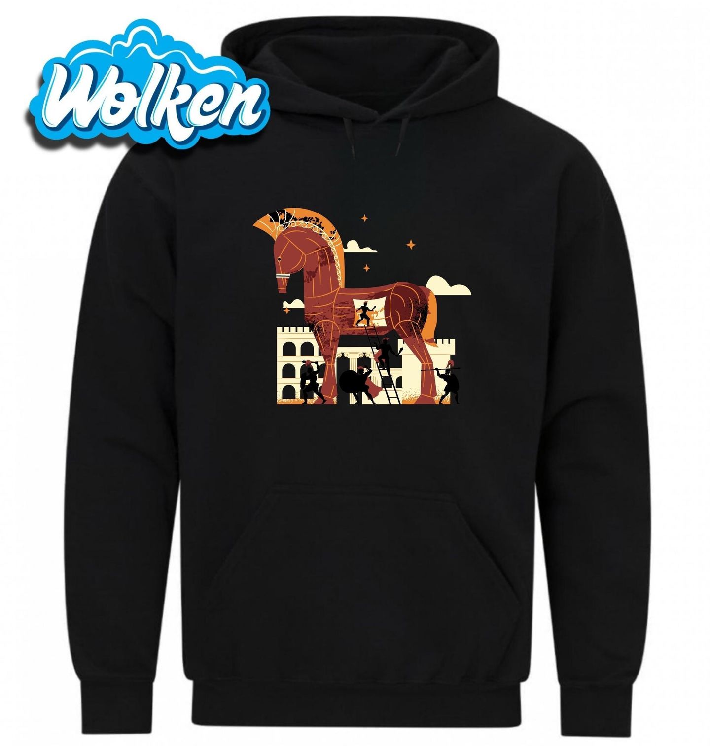 Pánská mikina Trójský kůň. Trójský kůň je symbol strategie, lsti a vítězství z řecké mytologie, spojený se závěrem trójské války. Podle legendy zanechali Řekové před hradbami Tróje dřevěného koně jako dar. Trójané jej přijali a vtáhli do města, netušíce, že uvnitř se ukrývají řečtí vojáci. Ti v noci vylezli ven, otevřeli brány a umožnili Řekům dobýt město.
