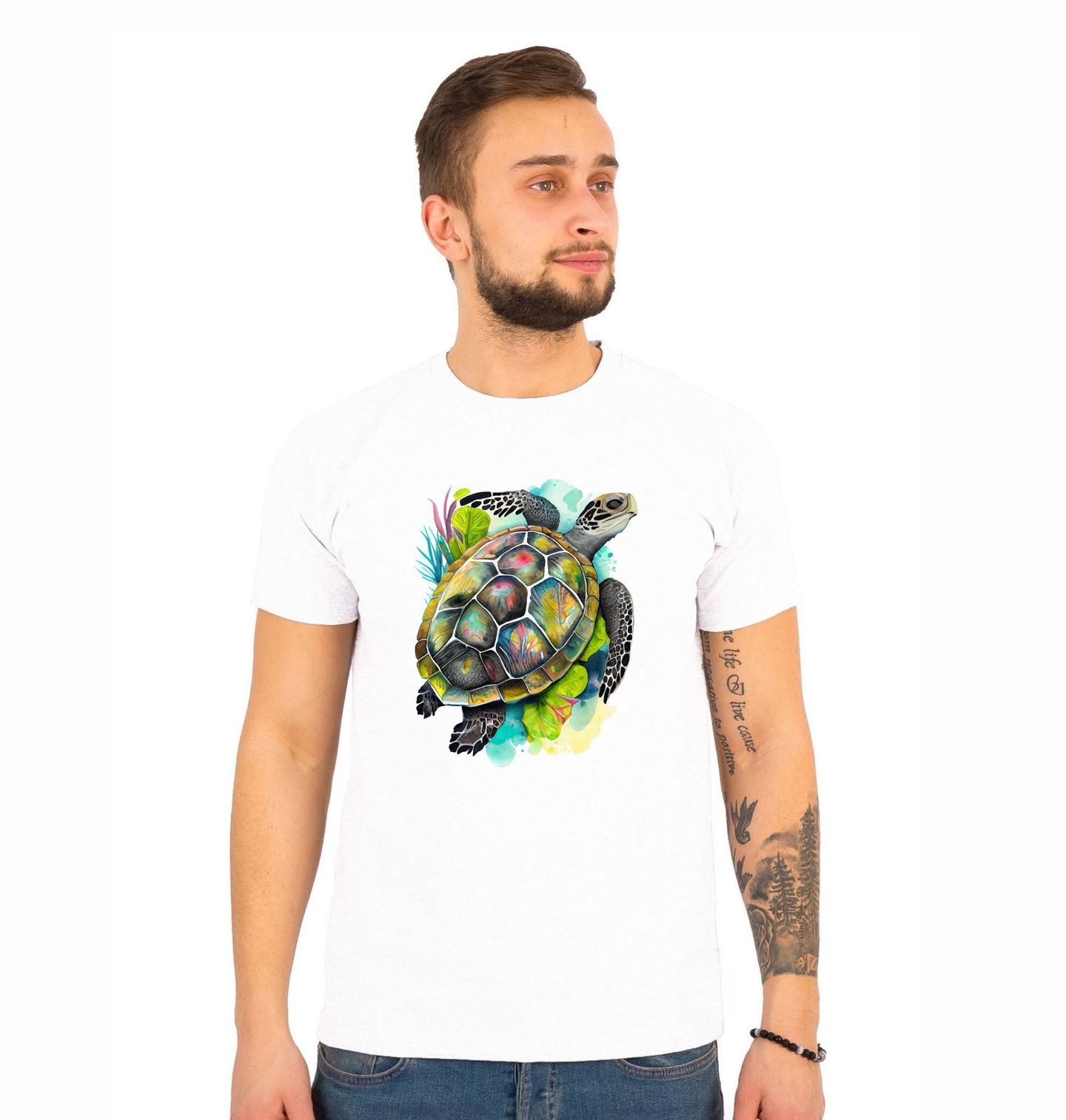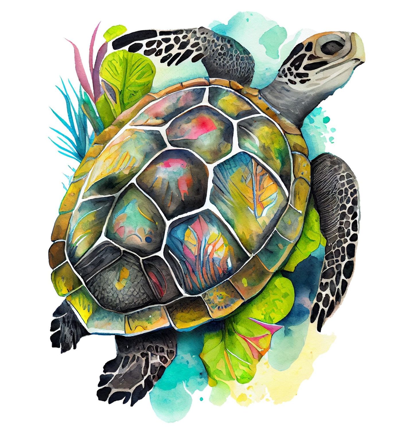 Pánské tričko Tropická Mořská Želva. Tento jedinečný akvarelový motiv zachycuje želva v celé své klidné kráse. Bohatě zdobený krunýř plný barev a přírodních detailů evokuje podmořský svět, harmonii oceánu a pomalé, vyrovnané tempo života, které je pro želvy tak typické. Design je ideální pro milovníky moře, přírody a exotických zvířat.