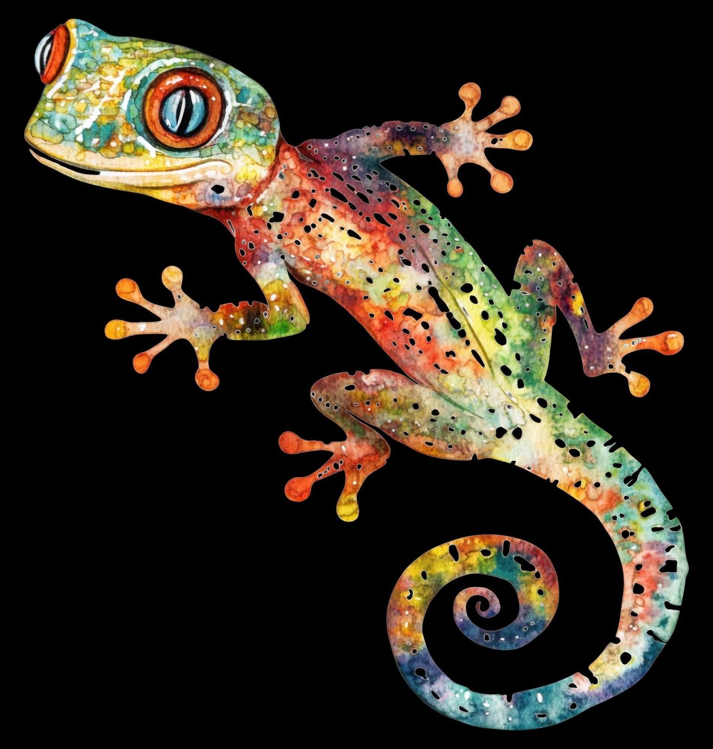 Dětské tričko Tropický Gekon. Akvarelový motiv zobrazuje gekona v pohybu, s typicky roztaženými prsty a spirálovitě stočeným ocasem. Gekon patří mezi nejoblíbenější tropické ještěrky, známé svou schopností lézt po hladkých plochách a aktivním nočním životem. Motiv je ideální pro milovníky exotických zvířat, přírody a barevných ilustrací.