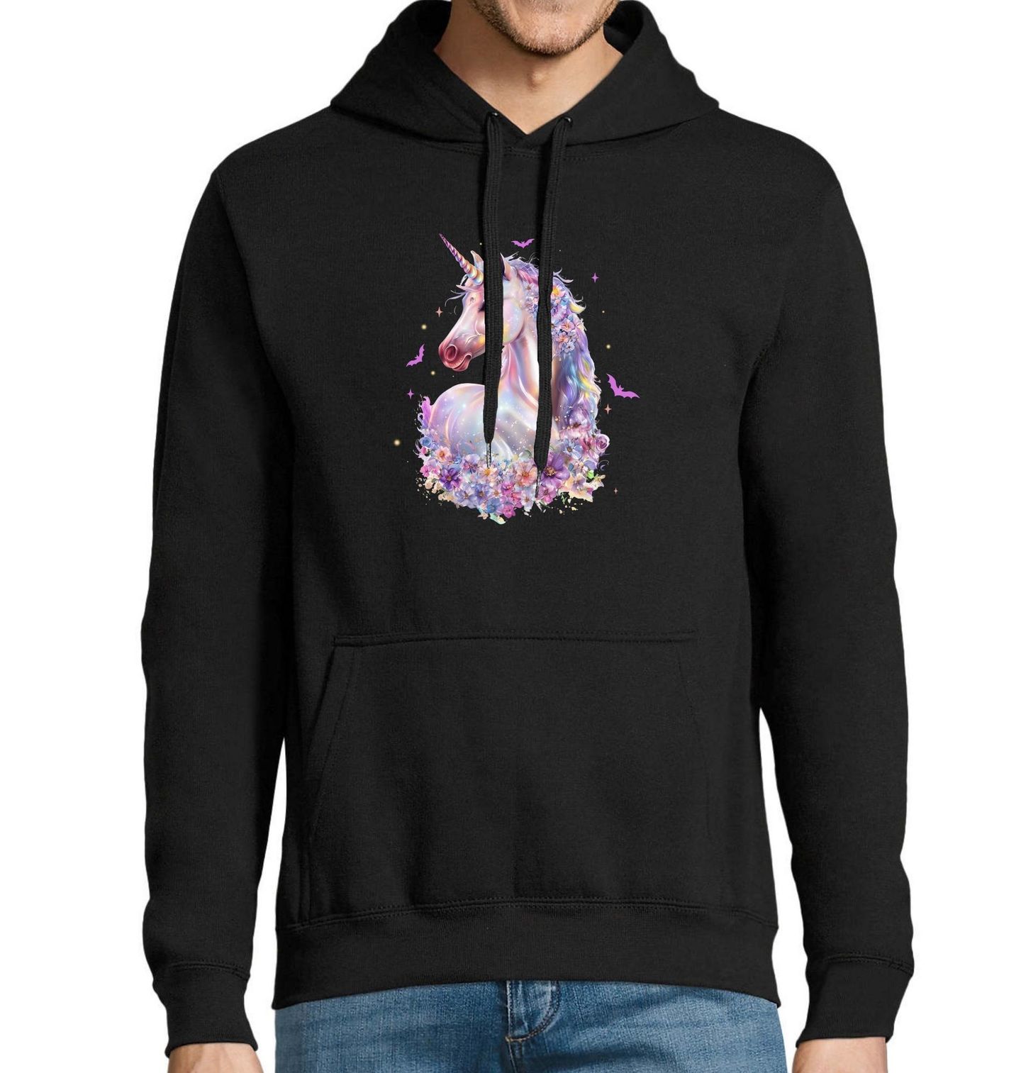 Pánská mikina Třpytivý Jednorožec v Květinách. Nechte děti vstoupit do říše fantazie s tímto nádherným tričkem, kde hlavní roli hraje jednorožec obklopený květinami, třpytkami a jemnou magií. Elegantní design s pastelovými barvami a zářivým efektem udělá radost každé malé princezně, která sní o kouzelném světě.