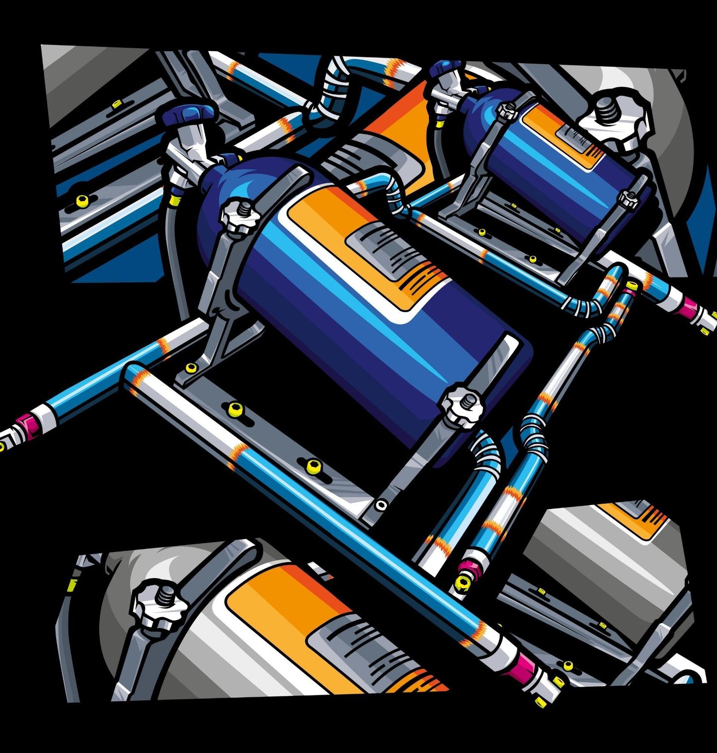 Dámské tričko Tuningové Láhve Dual Nitrous Bottle. Moderní tuningový motiv inspirovaný světem motorsportu a úprav výkonu zobrazuje detailní instalaci tlakových lahví v kufru, které slouží jako nitro systém pro auto. Jde o tzv. NOS (oxid dusný), tedy zařízení používané v tuningu ke krátkodobému zvýšení výkonu motoru – po aktivaci dodá více kyslíku do spalování a auto získá výrazný boost při akceleraci.