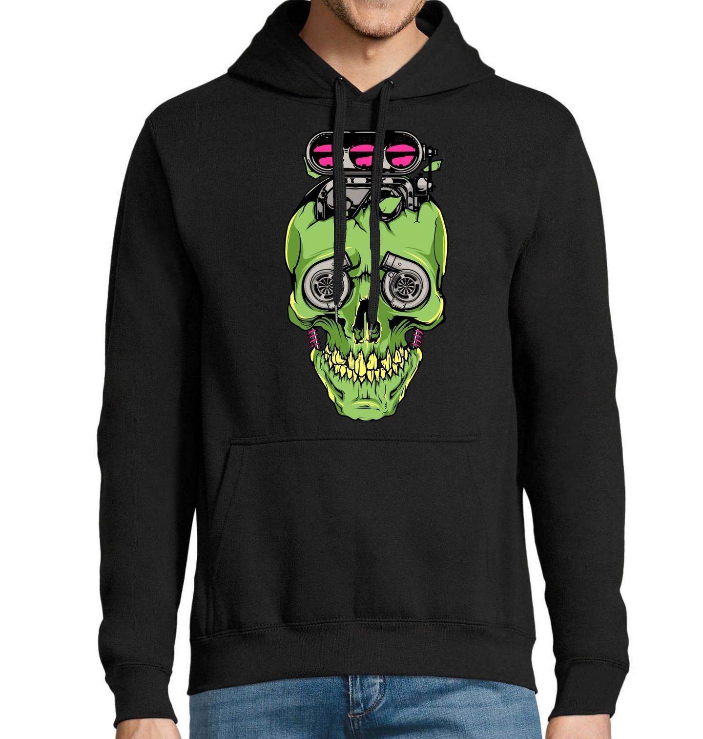 Pánská mikina Turbo Lebka. Drsný a výrazný motiv spojuje svět výkonu a temné estetiky do jednoho silného vizuálu. Dominantní lebka doplněná prvky jako motor a dvojité turbo vytváří agresivní design pro každého, kdo miluje rychlost, tuning a motorsport. Detailní ilustrace kombinuje mechanické součásti s výraznou grafikou a přináší unikátní styl, který okamžitě zaujme.