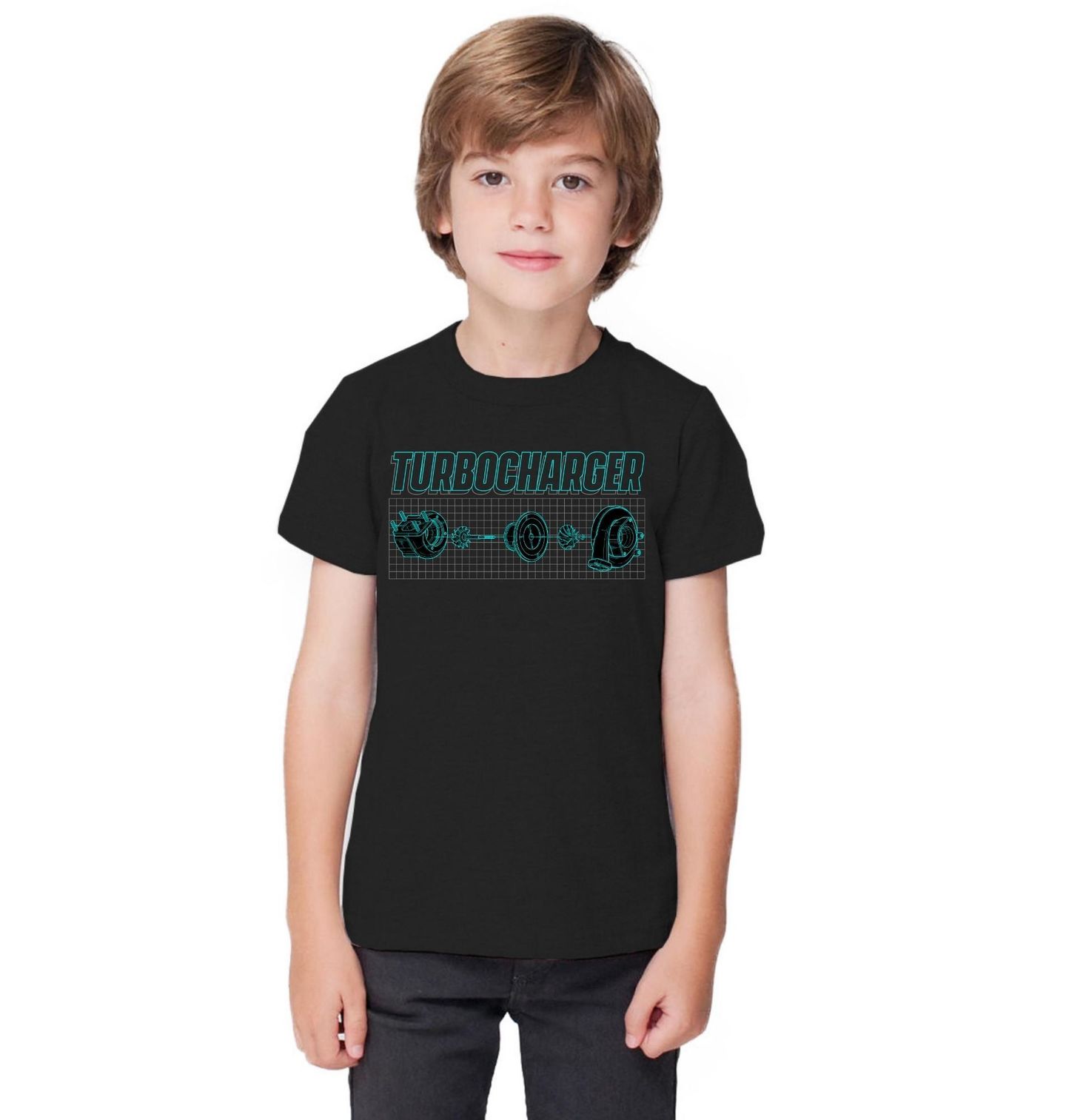 Dětské tričko Turbodmychadlo Turbocharger. Stylový motiv pro každého fanouška motorismu, kterému je blízké auto, výkon a technika. Design zobrazuje rozložený turbocharger ve stylu technického výkresu, takže perfektně vynikne každý detail, který pohání moderní auto na vyšší výkon. Pokud tě baví úpravy, tuning nebo motorsport, tenhle motiv přesně vystihuje vášeň pro turbo a mechaniku.