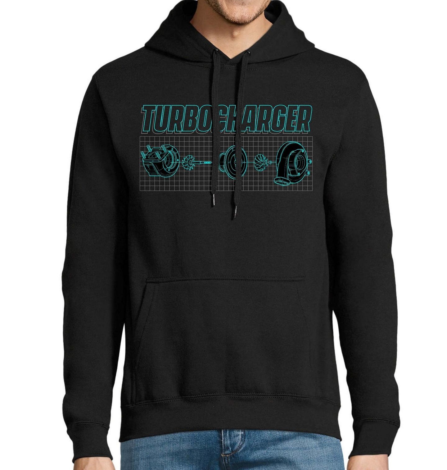 Pánská mikina Turbodmychadlo Turbocharger. Stylový motiv pro každého fanouška motorismu, kterému je blízké auto, výkon a technika. Design zobrazuje rozložený turbocharger ve stylu technického výkresu, takže perfektně vynikne každý detail, který pohání moderní auto na vyšší výkon. Pokud tě baví úpravy, tuning nebo motorsport, tenhle motiv přesně vystihuje vášeň pro turbo a mechaniku.