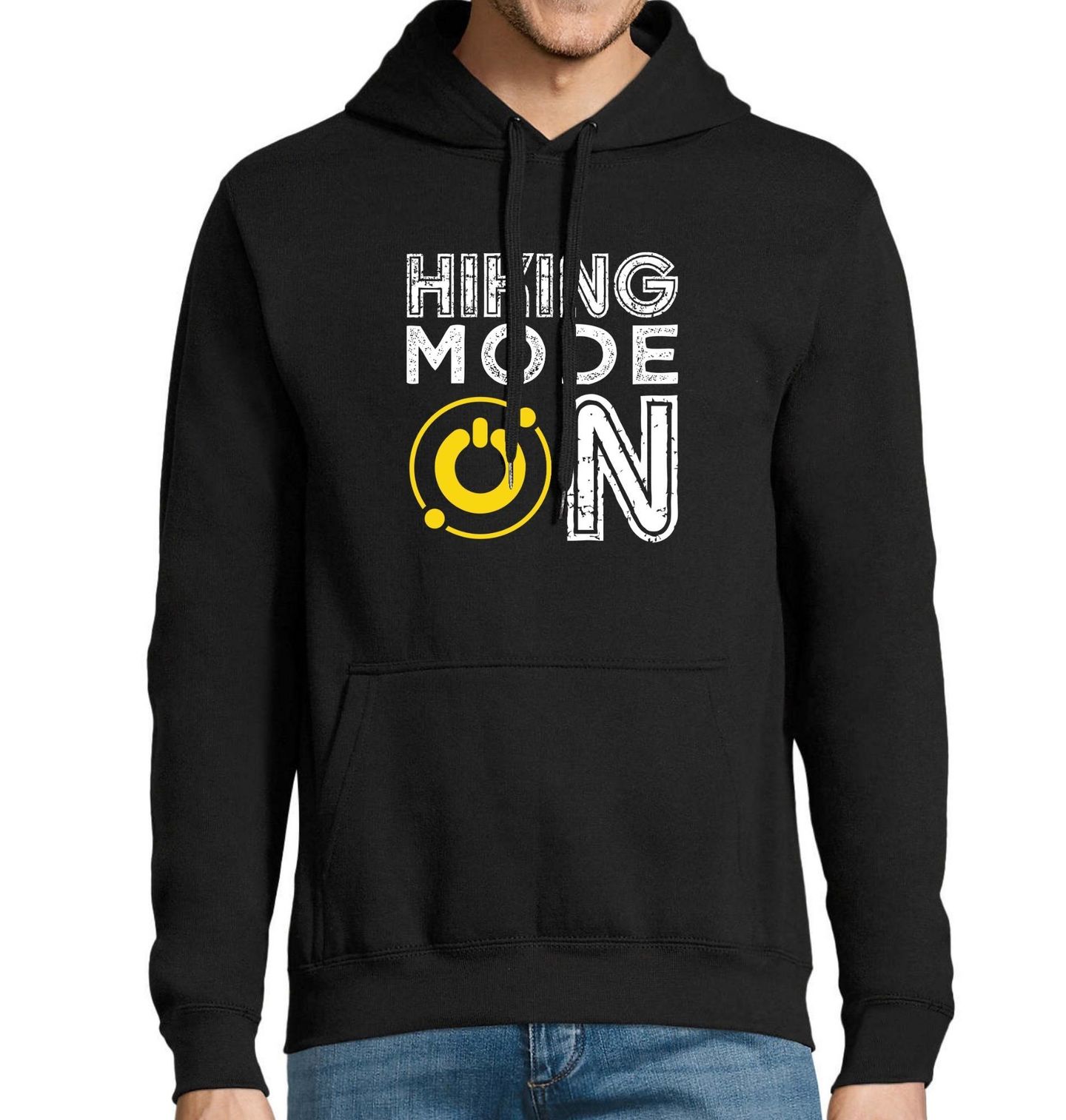 Pánská mikina Turistický režim aktivován. „Hiking Mode ON“ je ideální volba pro každého, kdo žije pro přírodu, hiking, camping a trošku toho horolezectví. Stylový, lehce „technický“ motiv s ikonou zapínání říká jasně – jakmile vkročím do lesa, jsem ve svém režimu. Skvělé pro horské výšlapy, stanování i relax pod širákem.