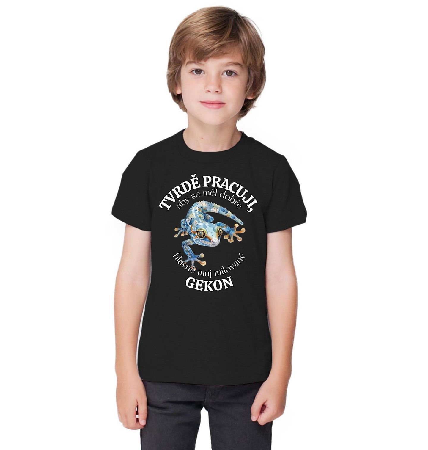 Dětské tričko Tvrdě pracuji, aby se měl dobře můj Gekon. Stylový motiv pro všechny milovníky exotiky, pro které je had nebo jiný plaz víc než jen zvíře. Tento design s gekonem zaujme každého, kdo obdivuje svět plazů a jejich jedinečný vzhled. Gekon je fascinující plaz, který vyniká svými schopnostmi i krásou. Ideální volba pro každého nadšence, pro kterého je plaz součástí životního stylu.