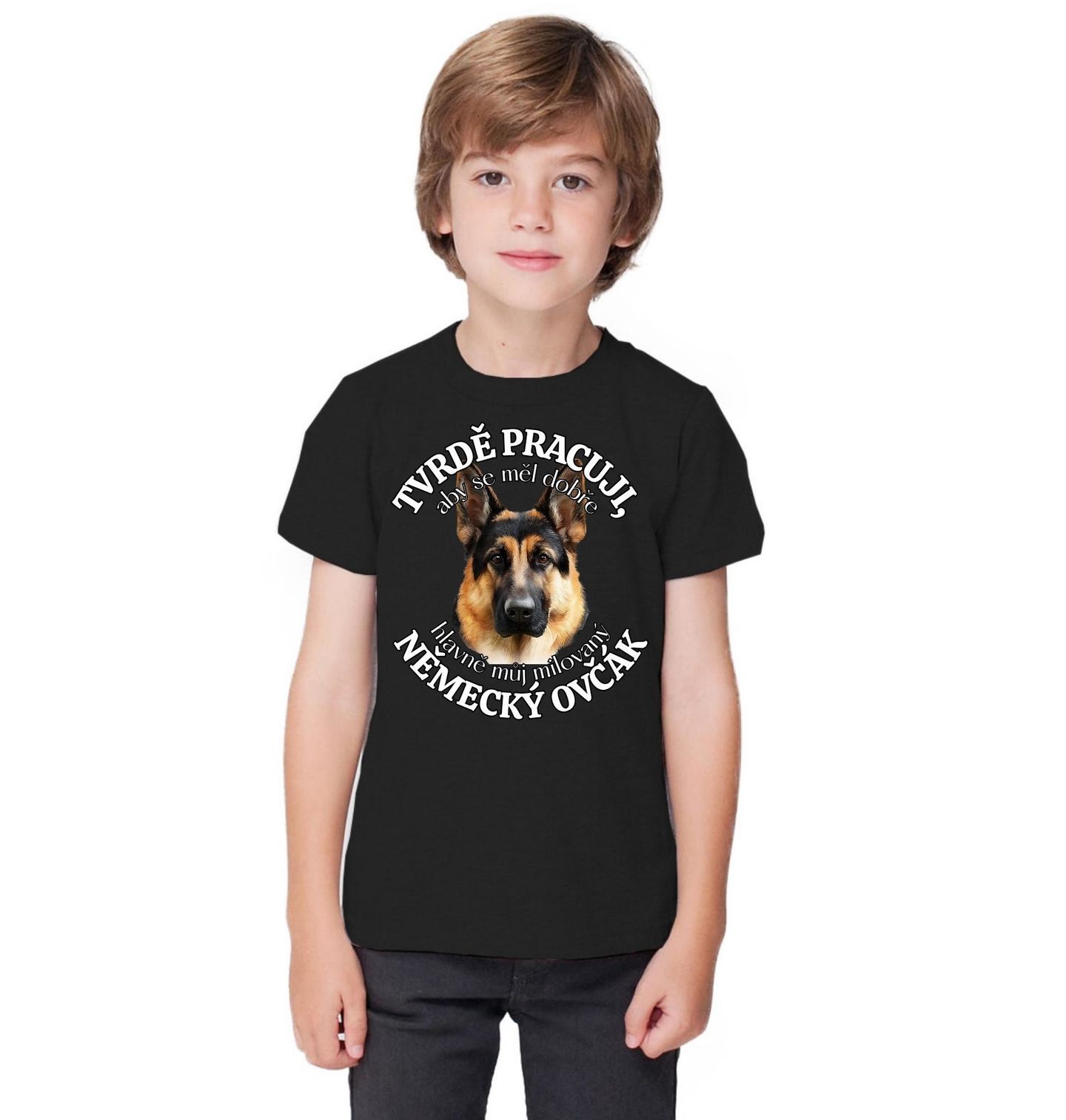Dětské tričko Tvrdě pracuji, aby se měl dobře můj Německý ovčák