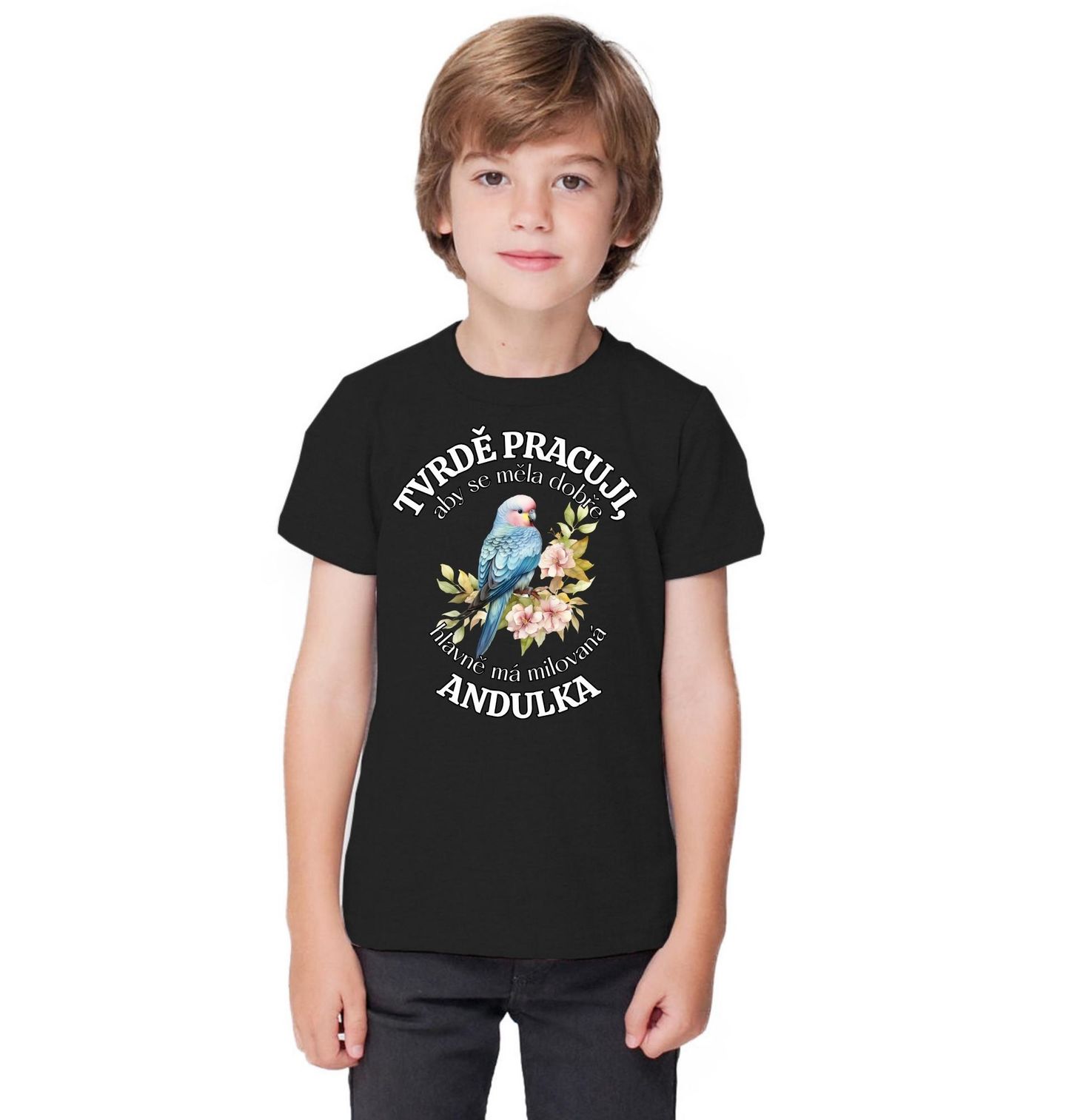 Dětské tričko Tvrdě pracuji, aby se měla dobře má Andulka