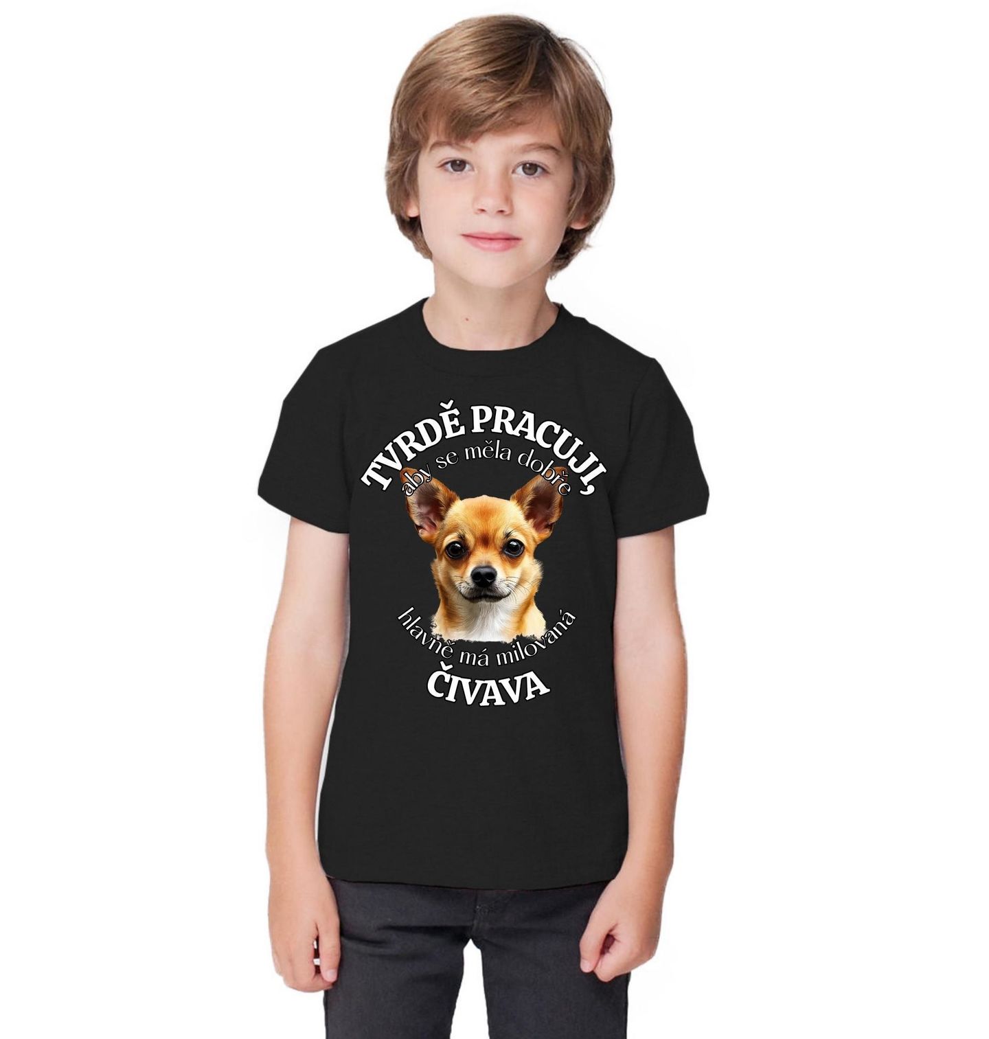 Dětské tričko Tvrdě pracuji, aby se měla dobře má Čivava