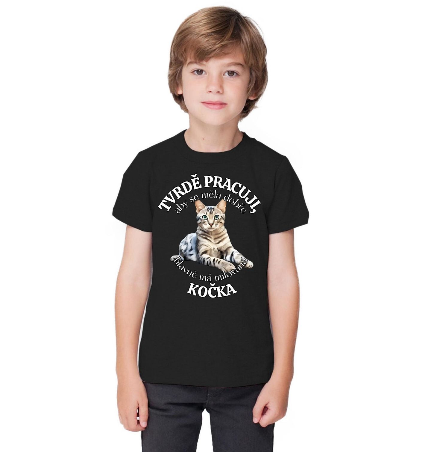 Dětské tričko Tvrdě pracuji, aby se měla dobře má Kočka