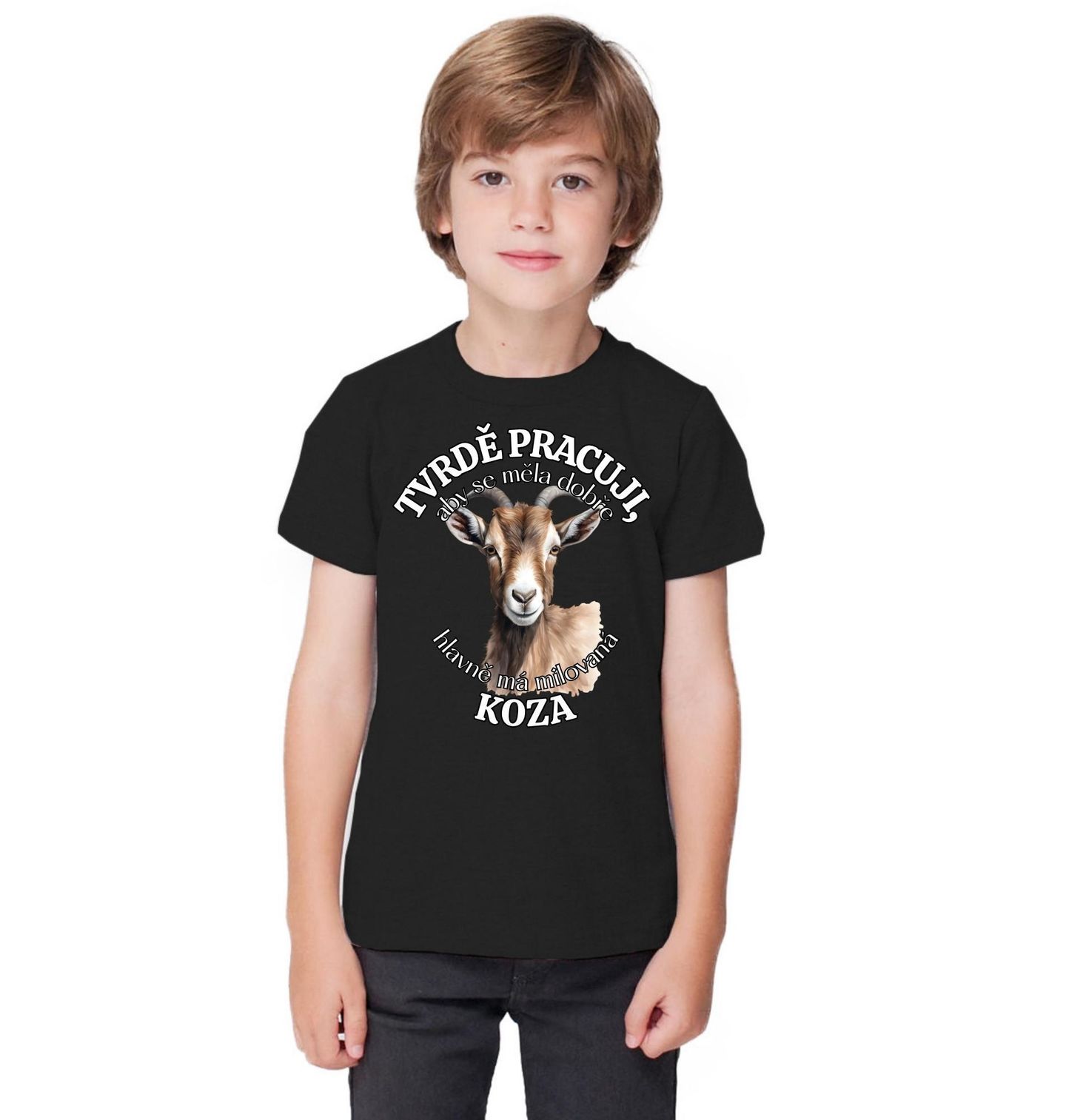 Dětské tričko Tvrdě pracuji, aby se měla dobře má Koza