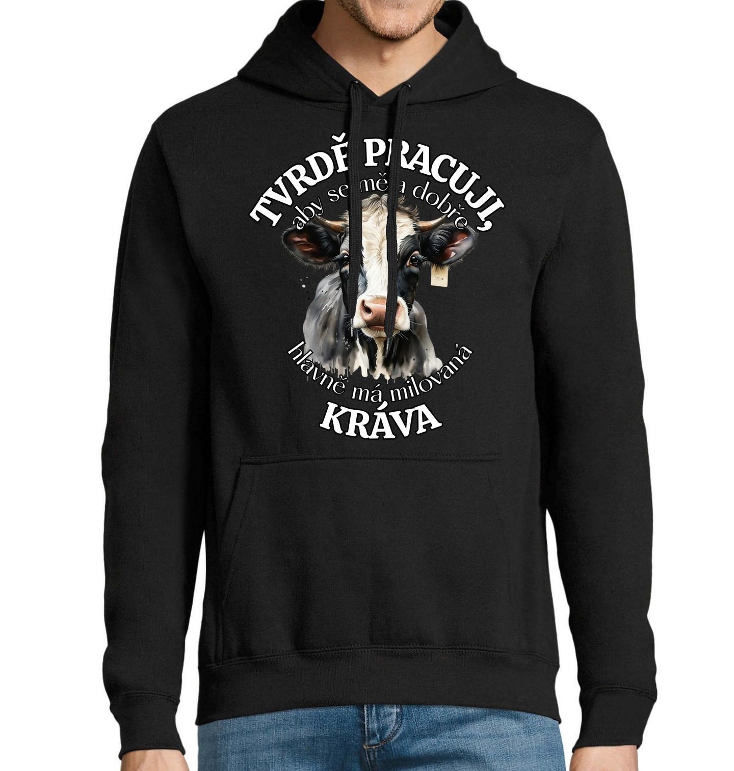 Pánská mikina Tvrdě pracuji, aby se měla dobře má Kráva