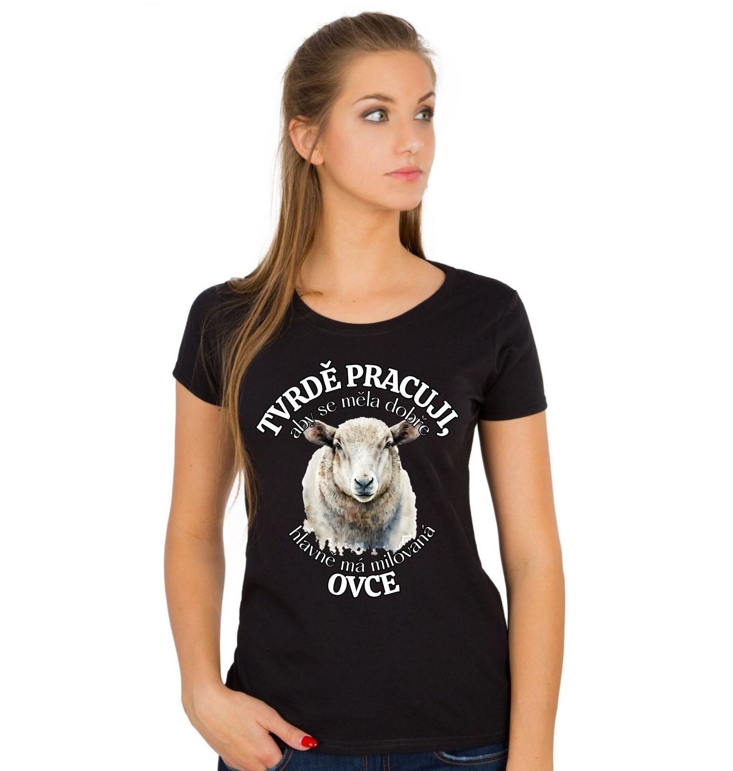 Dámské tričko Tvrdě pracuji, aby se měla dobře má Ovce