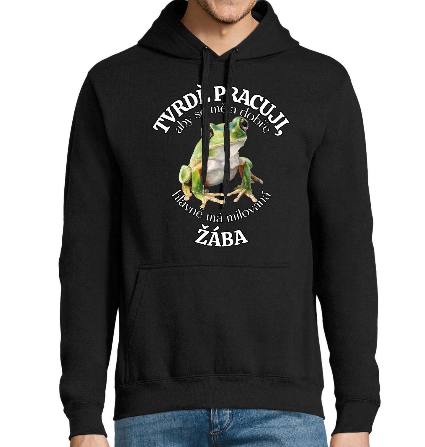 Pánská mikina Tvrdě pracuji, aby se měla dobře má Žába