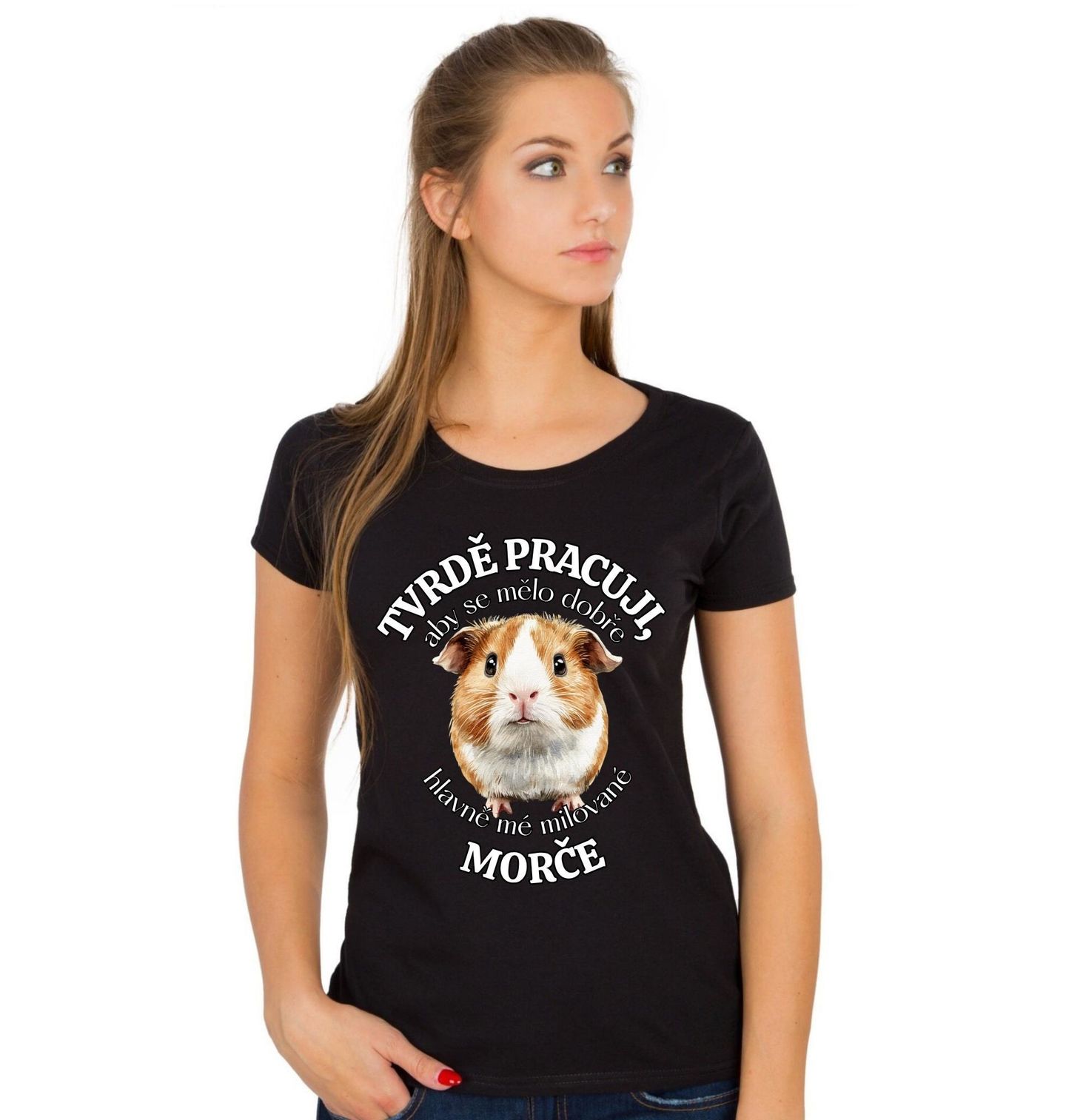 Dámské tričko Tvrdě pracuji, aby se mělo dobře mé Morče. Originální motiv pro všechny milovníky domácích mazlíčků, kteří vědí, že morče není jen zvíře, ale plnohodnotný člen rodiny. Tento roztomilý design potěší každého, kdo má doma morče a stará se o něj s láskou. Morče jako oblíbený hlodavec si zaslouží tu nejlepší péči, pohodlí a pozornost – a přesně tohle tričko vystihuje. Ideální dárek pro každého, pro koho je morče radost a hlodavec s velkým srdcem.