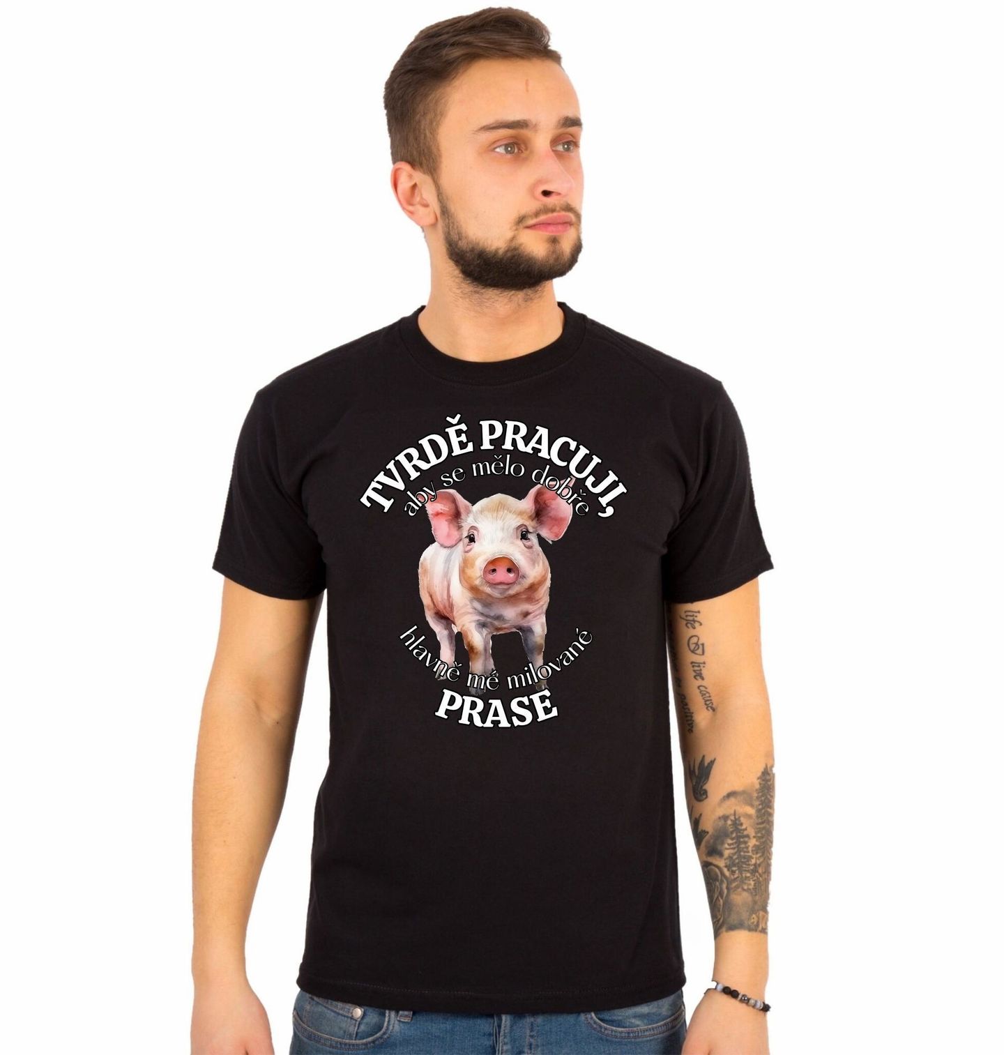 Pánské tričko Tvrdě pracuji, aby se mělo dobře mé Prase. Prase je důležitou součástí každé farmy a symbolem hojnosti, tradice i každodenní péče o zvířata. Tento design ukazuje, že prase není jen hospodářské zvíře, ale také bytost, o kterou se staráme s respektem. Ideální pro každého, kdo ví, že farma znamená víc než práci – je to životní styl plný přírody, poctivosti a vztahu ke zvířatům.