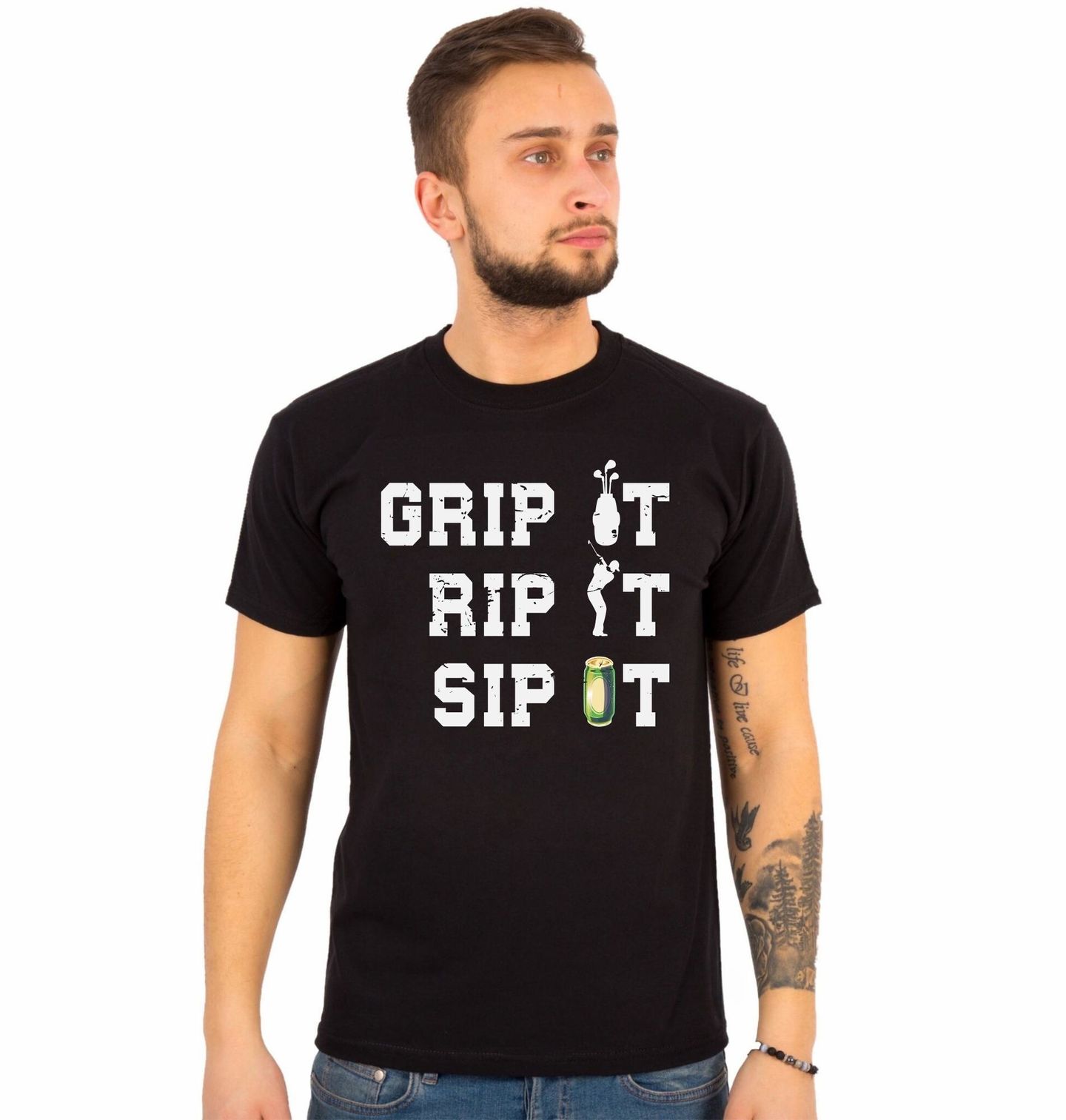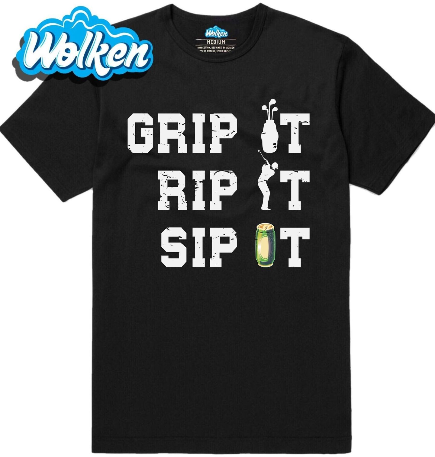 Pánské tričko Uchop to, odpal to, napij se. Golfový motiv pro všechny fanoušky golfu, humoru a studeného piva! Tento originální design "Grip it, Rip it, Sip it" spojuje vášeň pro odpaly i relax po hře. Ideální dárek pro každého, kdo miluje golf, dobré odpaly a pivo.