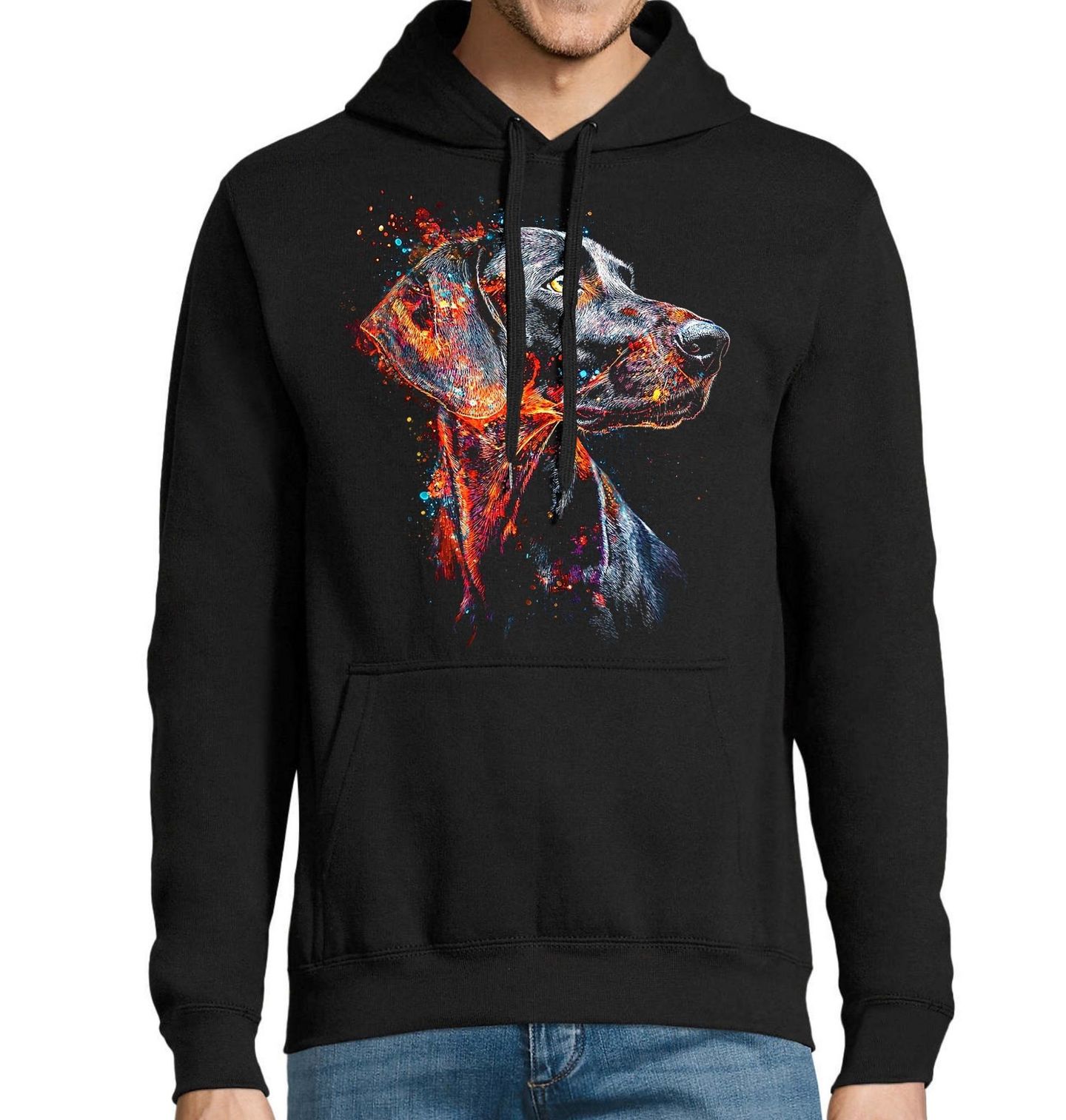 Pánská mikina Umělecký Portrét Psa Německý ohař krátkosrstý. Tento výrazný design zachycuje psa ve stylu barevné exploze, která podtrhuje jeho sílu, eleganci a jedinečnost. Plemeno labrador zde působí moderně a umělecky díky kontrastu tmavého pozadí a zářivých barev, které vytvářejí dynamický vizuální efekt. Ideální motiv pro milovníky psů a originálního umění.