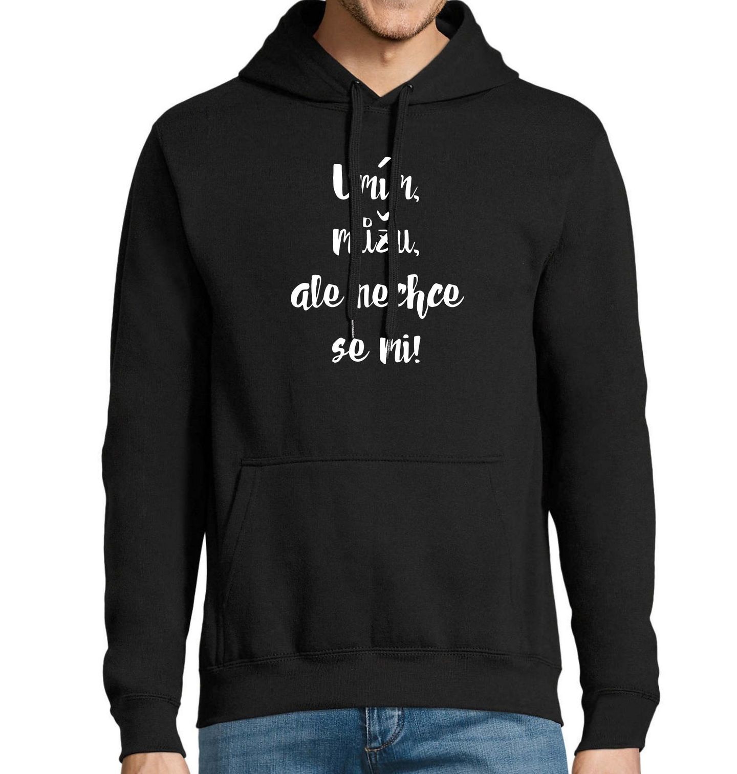 Pánská mikina Umím, můžu, ale nechci. Introvert přesně ví, že odpočinek je stejně důležitý jako výkon — a není důvod to nepřiznat s humorem. Tenhle design potěší každého, kdo si ze sebe umí udělat legraci a rád světu nenápadně připomene, že „může všechno… ale nemusí nic“.