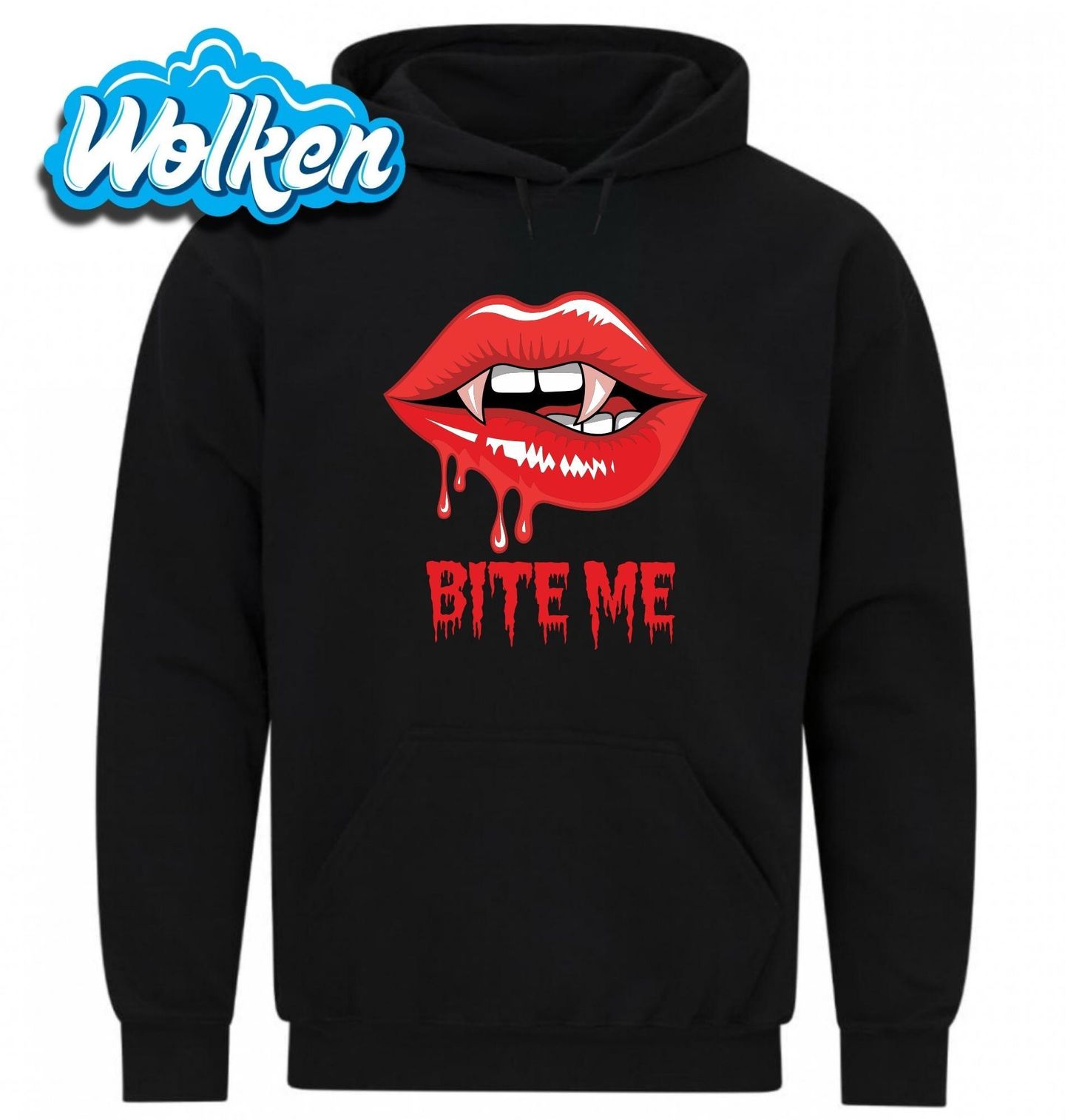 Pánská mikina Upíří Polibek BITE ME. Provokativní tričko BITE ME (česky: "Kousni mě") s upířími špičáky a krvavými rty – ideální pro všechny, kdo milují temnou lásku, vampire styl a nebojí se ukázat svůj dráždivý smysl pro humor. Perfektní na párty, Halloween, nebo pro každého fanouška dark romance. Protože i láska může mít ostré zuby jako upír!
