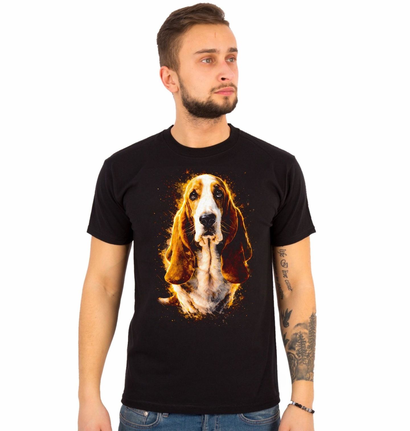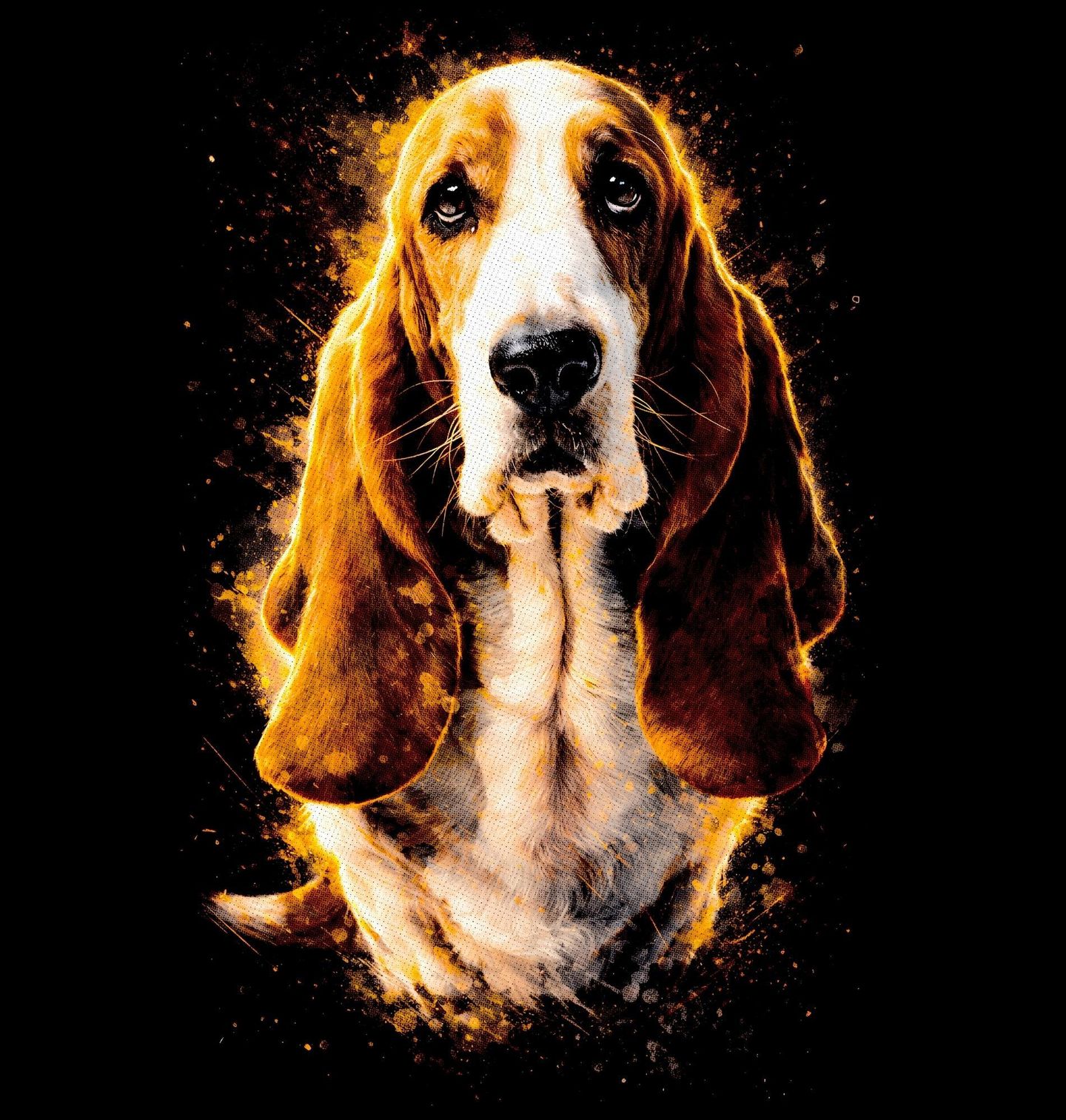 Pánské tričko Ušlechtilý Baset. Tento originální motiv zachycuje charismatického psa s typicky dlouhýma ušima a smutně roztomilým výrazem. Jedná se o plemeno baset (Basset Hound), které je známé svou klidnou povahou, oddaností a nezaměnitelným vzhledem. Každý pejskař ocení jedinečné zpracování, které zvýrazňuje výrazné rysy, dlouhé uši a hluboký pohled, díky kterému si tento pes získává srdce na první pohled.