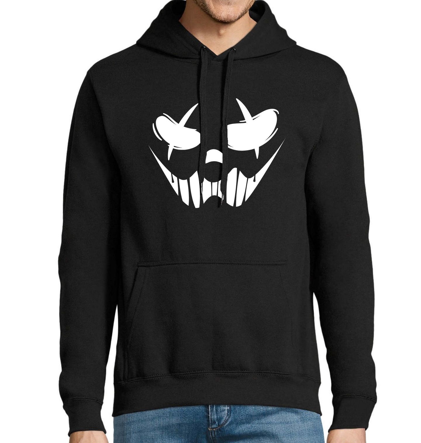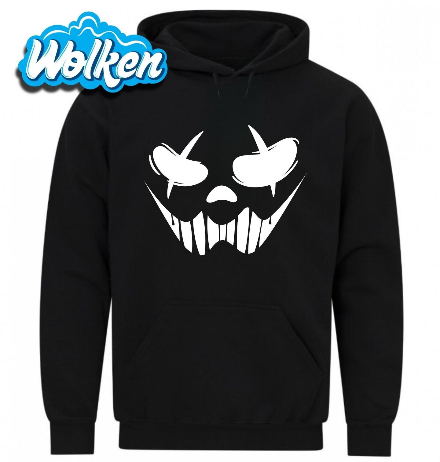 Pánská mikina Úsměv z temnot. Tahle maska mluví beze slov – jen s širokým, děsivým úsměvem. Čistý černobílý kontrast, kapka šílenství a kapka stylu. Ideální pro fanoušky hororu, creepy cartoon stylu a Halloweenu.