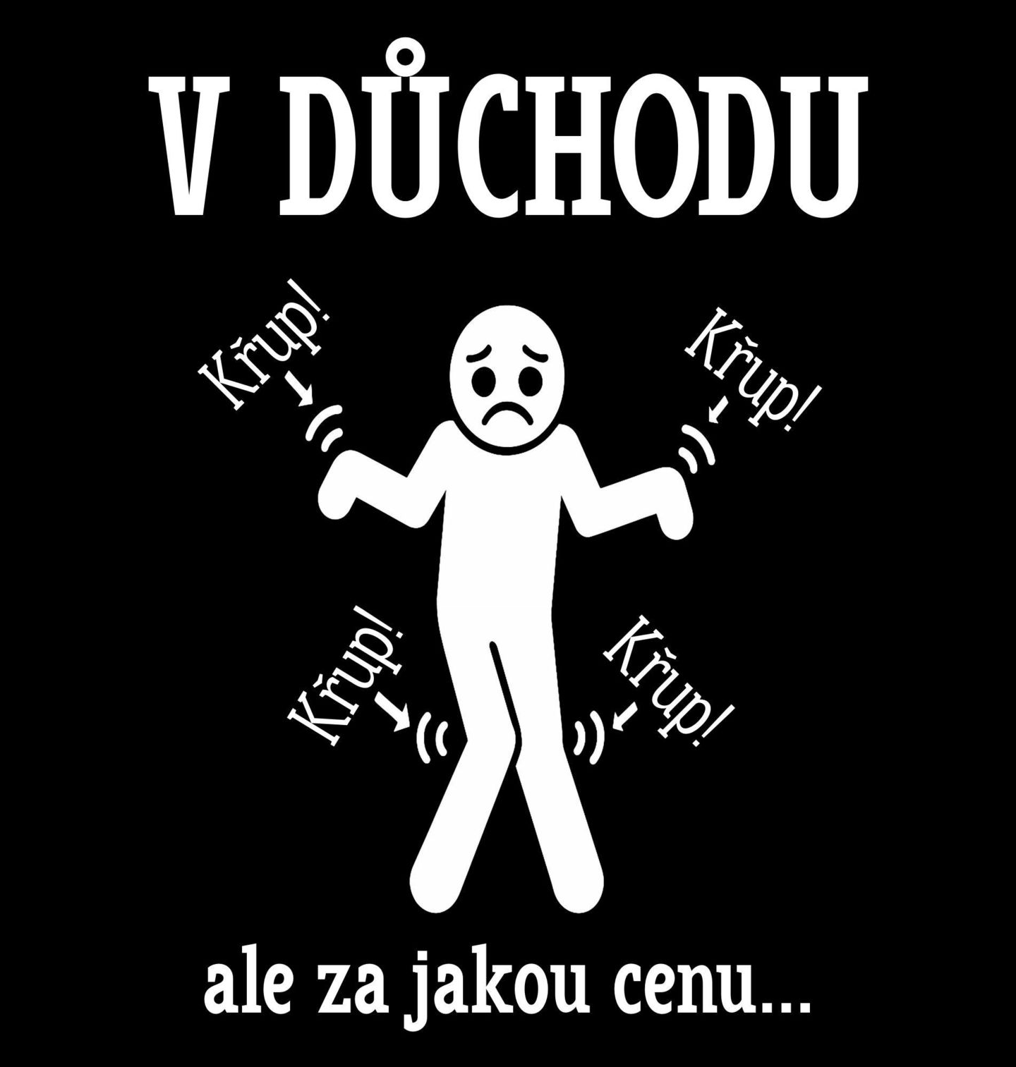 Pánské tričko V důchodu, ale za jakou cenu…Humorný motiv V důchodu… ale za jakou cenu trefně zachycuje realitu, kterou dobře znají prarodiče. Důchod přináší víc času, ale také zvuky, které se ozývají při každém pohybu – kosti křupou, křup, křup, a člověk se tomu může už jen zasmát. Babička i dědeček to berou s nadhledem, zkušenostmi a typickým smyslem pro humor.