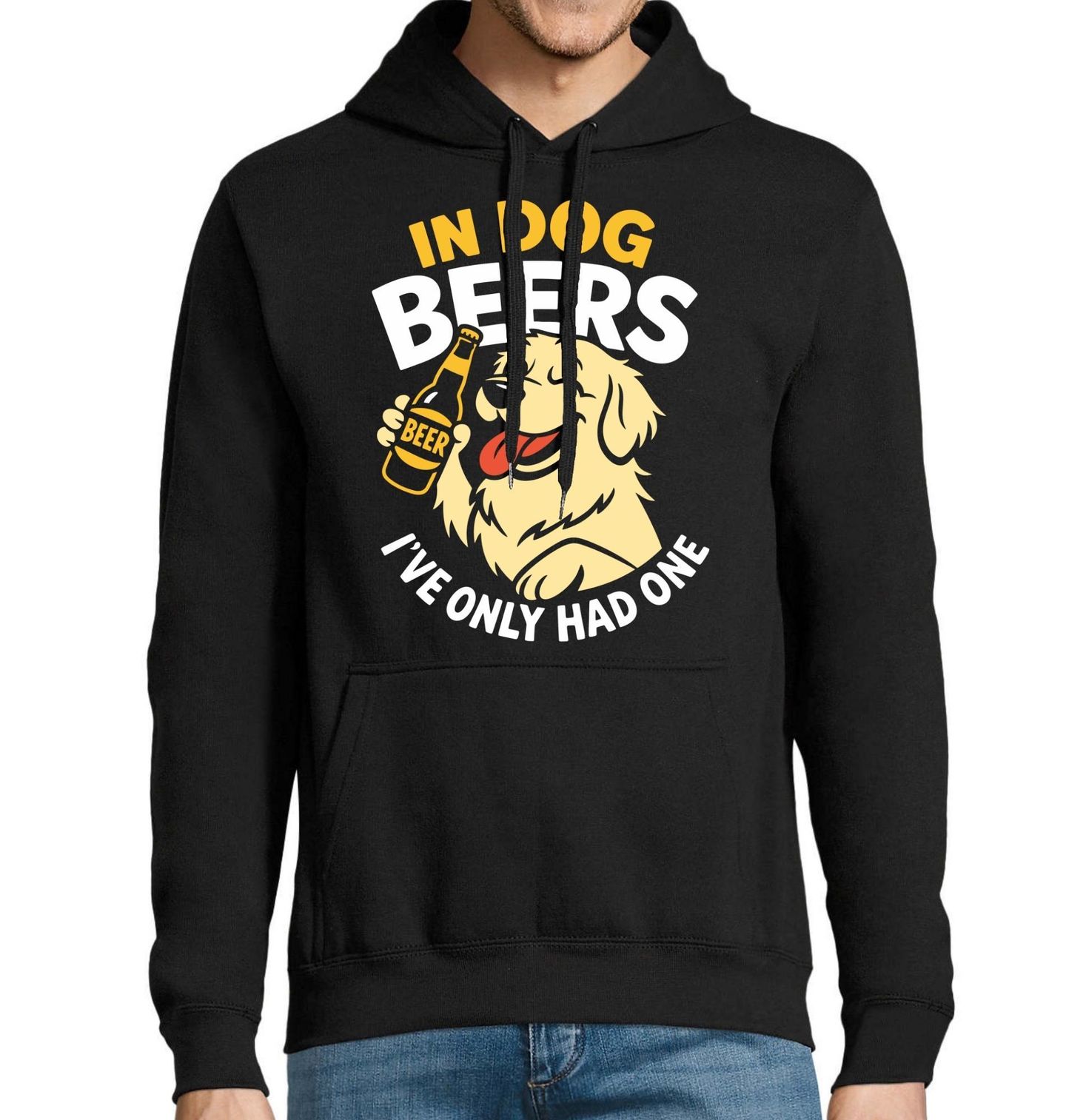 Pánská mikina In Dog Beers I’ve Only Had One. Vtipný motiv pro všechny milovníky chlupatých parťáků a dobré nálady. Usměvavý pes s lahví v tlapce a hláška „In Dog Beers I’ve Only Had One“ si pohrává s humorem a nadsázkou, kterou ocení každý, kdo má rád pivo a psy. Vhodný dárek pro každého pejskaře.