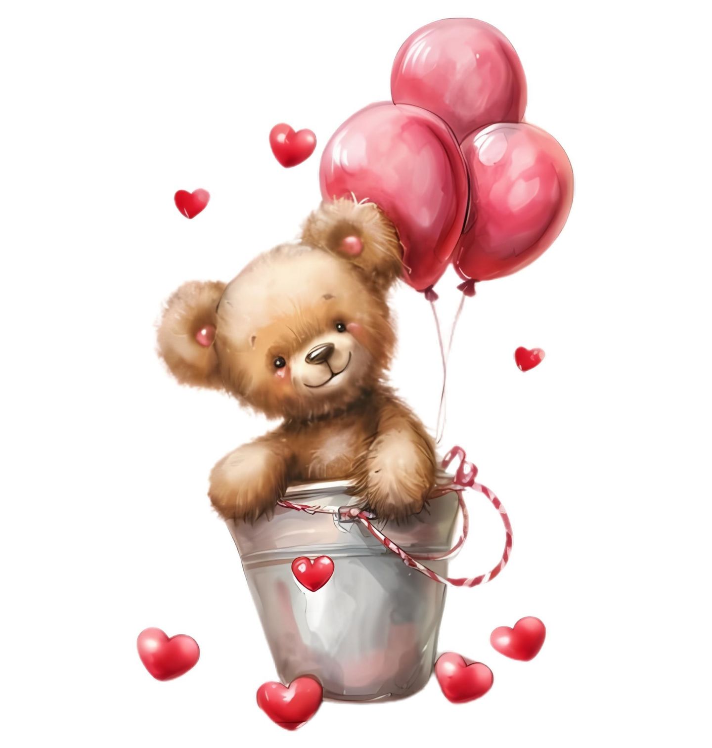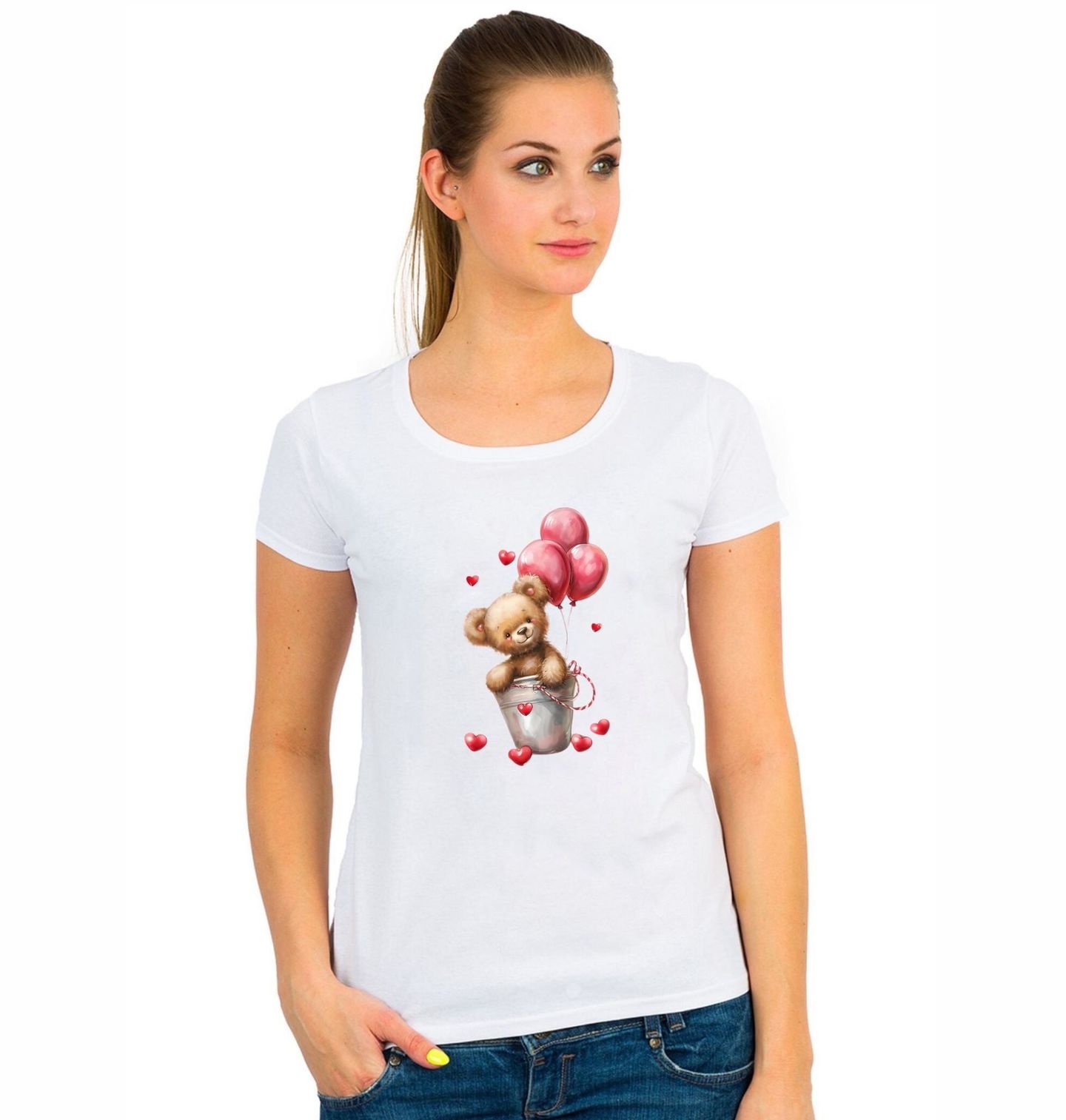 Dámské tričko Valentýnský Medvídek s Balónky. Roztomilý medvěd s červenými balónky a srdíčky je dokonalým symbolem něhy a romantiky. Tento sladký motiv vyzařuje čistou láska, radost a hřejivý pocit, který potěší každé srdce. Ideální jako dárek na Valentýn pro partnera, partnerku nebo kohokoliv, komu chceš dát najevo své city.