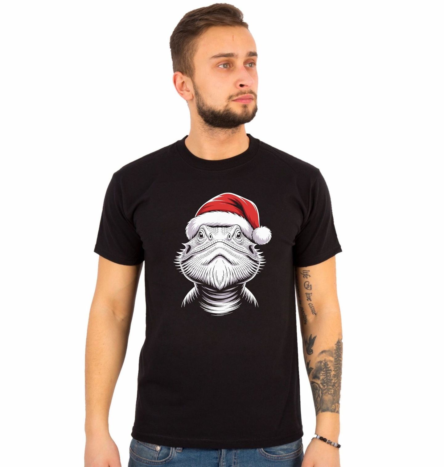 Pánské tričko Vánoční Agama Vousatá v Čepici