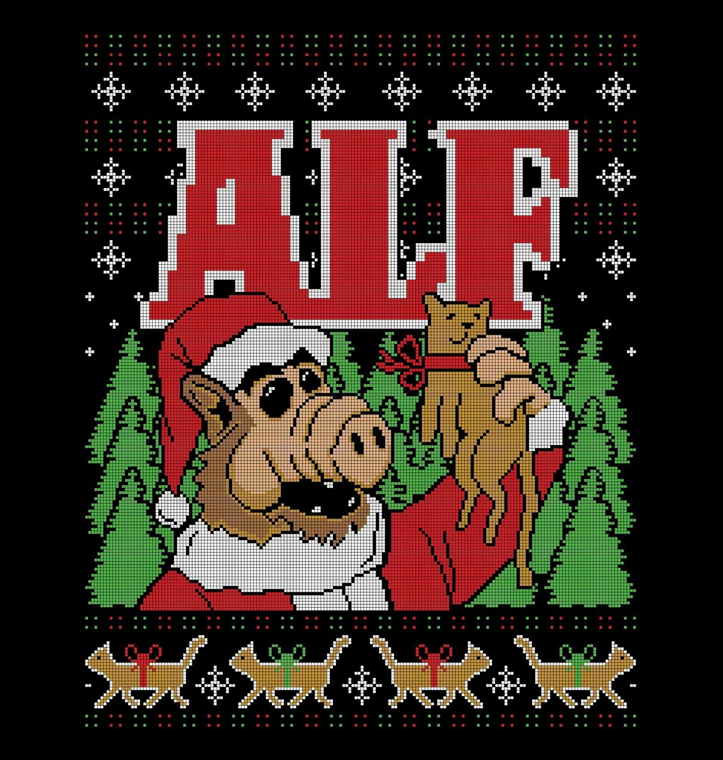 Pánské tričko Vánoční ALF. Vánoce, ugly sweater a pořádná dávka retro humoru? ALF je postava z amerického komediálního seriálu "ALF" (Alien Life Form), který běžel v letech 1986–1990. Tento mimozemšťan z planety Melmac se proslavil nejen svým sarkasmem, ale i zálibou v kočkách – které ale bohužel považuje za delikatesu.