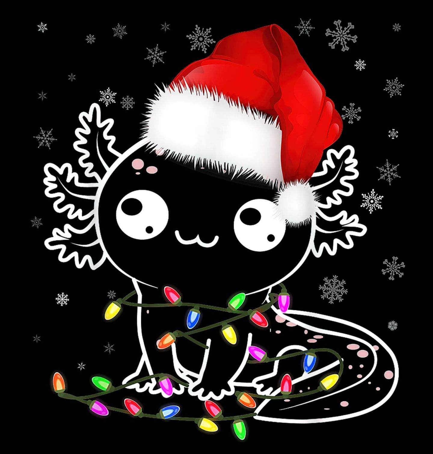 Dětské tričko Vánoční Axolotl plný Světýlek. Když se spojí kouzlo Vánoc a roztomilost podvodního tvora, vznikne něco naprosto neodolatelného. Axolotl v santovské čepici, zamotaný do světýlek a obklopený sněhovými vločkami, přináší nový pohled na Vánoce.