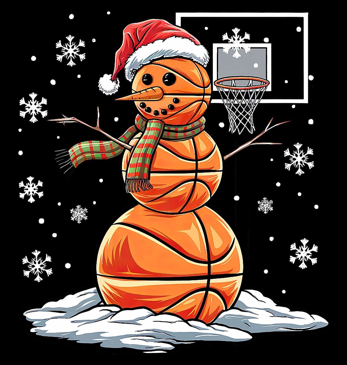 Dětské tričko Vánoční Basketbalový Sněhulák. Tento netradiční sněhulák je postavený z basketbalových míčů, má červenou vánoční čepici, šálu a stojí přímo u koše. Skvělý design pro všechny hráče i fanoušky basketbalu, kteří chtějí oslavit Vánoce po sportovním stylu.