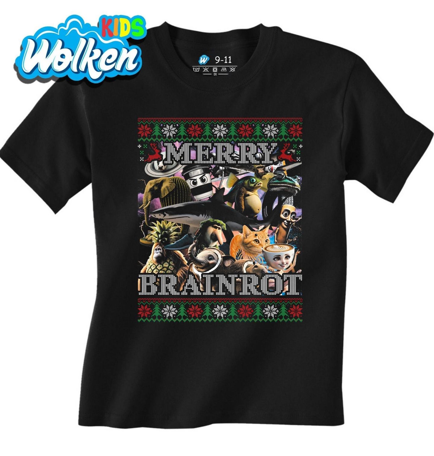 Dětské tričko Vánoční Brainrot Merry Brainrot. Připrav se na nejchaotičtější Vánoce svého života – přichází italský brainrot ve formě, která se nebojí ničeho! Tahle vánoční šílenost kombinuje absurdní internetovou kulturu s kouzlem Vánoc a vytváří motiv, který zaručeně zaujme každého.